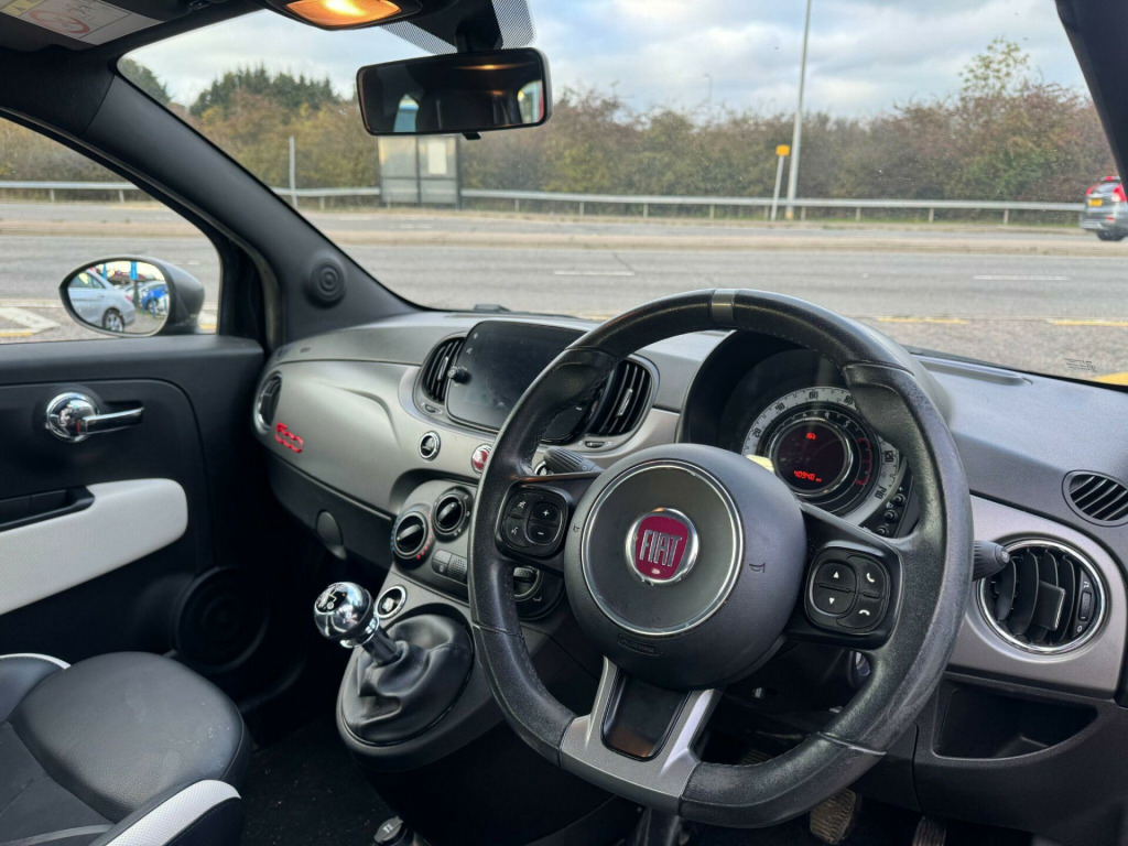 FIVE BELLS CAR SALES HAVE THE PLEASURE IN OFFERING THIS STUNNING FIAT 500 S WITH SERVICE HISTORY EURO 6 ULEZ COMPLIANT EXTRAS INCLUDE, AIR CON, BLUETOOTH, BODY STYLING, FULL LEATHER INTERIOR, ELECTRIC WINDOWS, ALLOY WHEELS, ELECTRIC HEATED WING MIRRORS, STUNNING COLOUR, VERY ECONOMICAL DRIVES FAULTLESS,JUST ARRIVED, ANY INSPECTION WELCOME, SUPERB VALUE, LOCATED IN BASILDON JUST OFF A13 PLEASE CALL 01268 555888 AT YOUR CONVENIENCE TO ARRANGE A VIEWING FINANCE AVAILABLE,PX WELCOME OPEN 7 DAYS, £7975. 12V Point, 15in Alloy Wheels - Satin Graphite, 50-50 Split Folding Rear Seat with Height Adjustable Head Restraints, 7in HD Touchscreen Radio with Bluetooth - USB-AUX-In and DAB, ABS with EBD, Air Conditioning, Apple CarPlay - Android Auto Connectivity, Automatic Door Locking, Body Coloured Sports Bumpers, Cruise Control, Dark Tinted Rear Windows, Driver and Passenger Airbag with Dual Stage System, Drivers Knee Airbag, Dualdrive Power Steering, ESC - Electronic Stability Control, Electric Front Windows, Electrically Adjustable Painted Door Mirrors with Defrosting and External Temperature Sensor, Fix and Go Puncture Repair Kit, Fog Lights, Front Seat Belts with Pretensioners - Load Limiter And Fastening Sensor, Front Seats with Memory Function, Hazard Light Automatic Activation During Emergency Braking, Heat Reflective Windows, Heated Rear Window, Height Adjustable Drivers Seat, Height Adjustable Front Head Restraints, ISOFIX Attachment Points for Child Safety Seat On Rear Seat, Instrument Panel with Rev Counter, LED Daytime Running Lights, Leather Sport Steering Wheel with Audio Controls, Rear Parking Sensors, Rear Speakers, Rear Window Wiper-Washer, Remote Central Locking, Satin Graphite Exterior Details, Side Airbags, Speed Limiter, Sports Kit, Steering Wheel - Height Adjustment, TPMS - Tyre Pressure Monitoring System, Window Airbags, Sport Fabric - Black-White with Black Ambience.