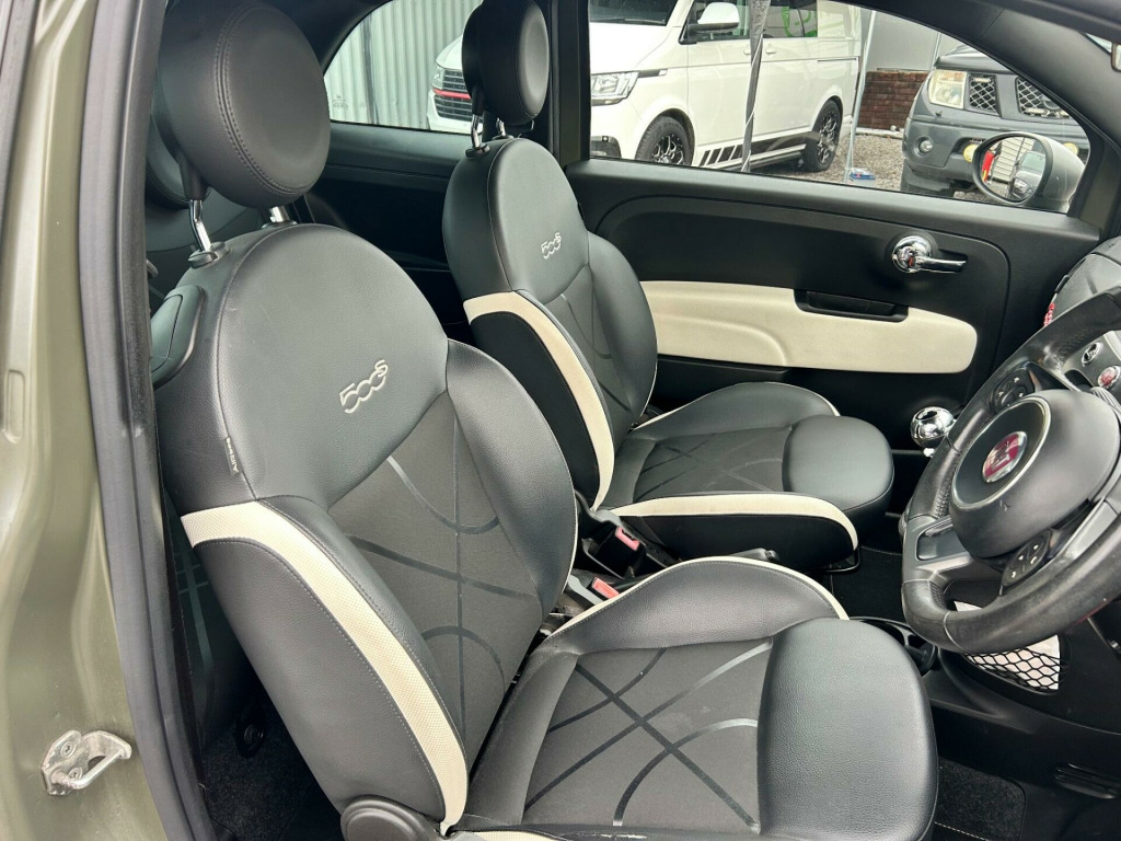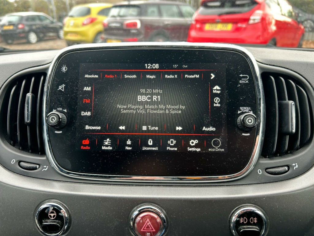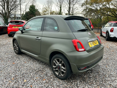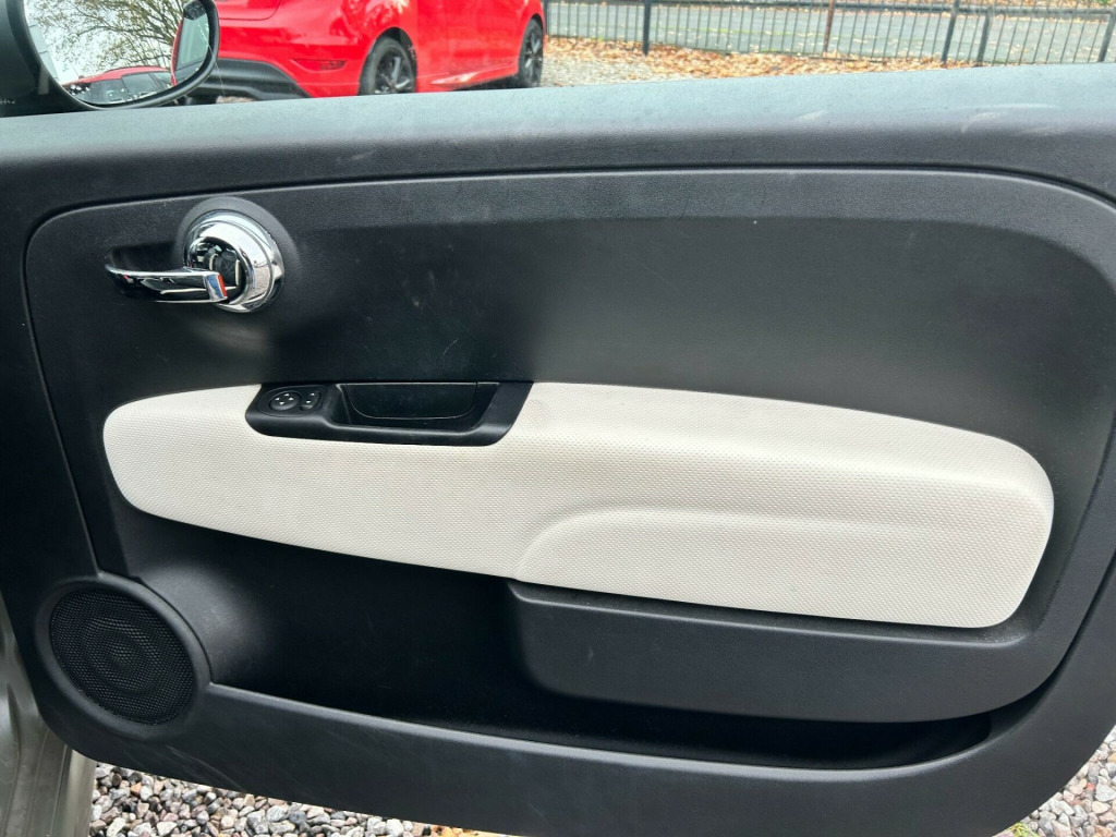 Fresh stock awaiting valet This 2017 Fiat 500 S offers a stylish and economical city driving experience. Powered by a 1.2 litre Euro 6 petrol engine, this model is registered in 2017 and features the S trim. Inside, you'll find a 7in HD touchscreen radio complete with 3D navigation, Bluetooth connectivity for handsfree calls and music streaming, a USB and Aux in port, and DAB digital radio. Comfort is enhanced by front seats with a memory function and air conditioning, all sitting on attractive 15in alloy wheels.The Fiat 500 S is designed to be budget friendly, falling into a low insurance group which can help to keep your running costs down. Furthermore, its low CO2 emissions indicate it is a more environmentally conscious choice compared to many other vehicles. These factors, combined with its compact size and user friendly technology, make this Fiat 500 S a practical and appealing option for everyday journeys. n hd touchscreen radio with 3d navigation - bluetooth - usb-aux-in and dab, 15in alloy wheels - 431, space saver spare wheel, sport fabric - black-white with black ambience, 12v socket - front, 15in alloy wheels - satin graphite, 50-50 split folding rear seat with height adjustable head restraints, 7 airbags, 7in hd touchscreen radio with bluetooth - usb-aux-in and dab, 7in tft instrument cluster, abs with ebd, air conditioning, automatic door locking, body coloured sports bumpers, dark tinted rear windows, door mirrors - satin graphite, dualdrive power steering, esc - electronic stability control, electric front windows, electrically adjustable painted door mirrors, fix and go puncture repair kit, fog lights, front seats with memory function, fuel cap with tap, gsi - gear shift indicator, hazard light automatic activation during emergency braking, heat reflective windows, heated rear window, height adjustable drivers seat, height adjustable front head restraints, isofix attachment points for child safety seat on rear seat, instrument panel with rev counter, led daytime running lights, rear parking sensors, rear window wiper-washer, remote central locking, satin graphite exterior details, sports kit, steering wheel - height adjustment, steering wheel - leather with audio controls, tpms - tyre pressure monitoring system, trip computer