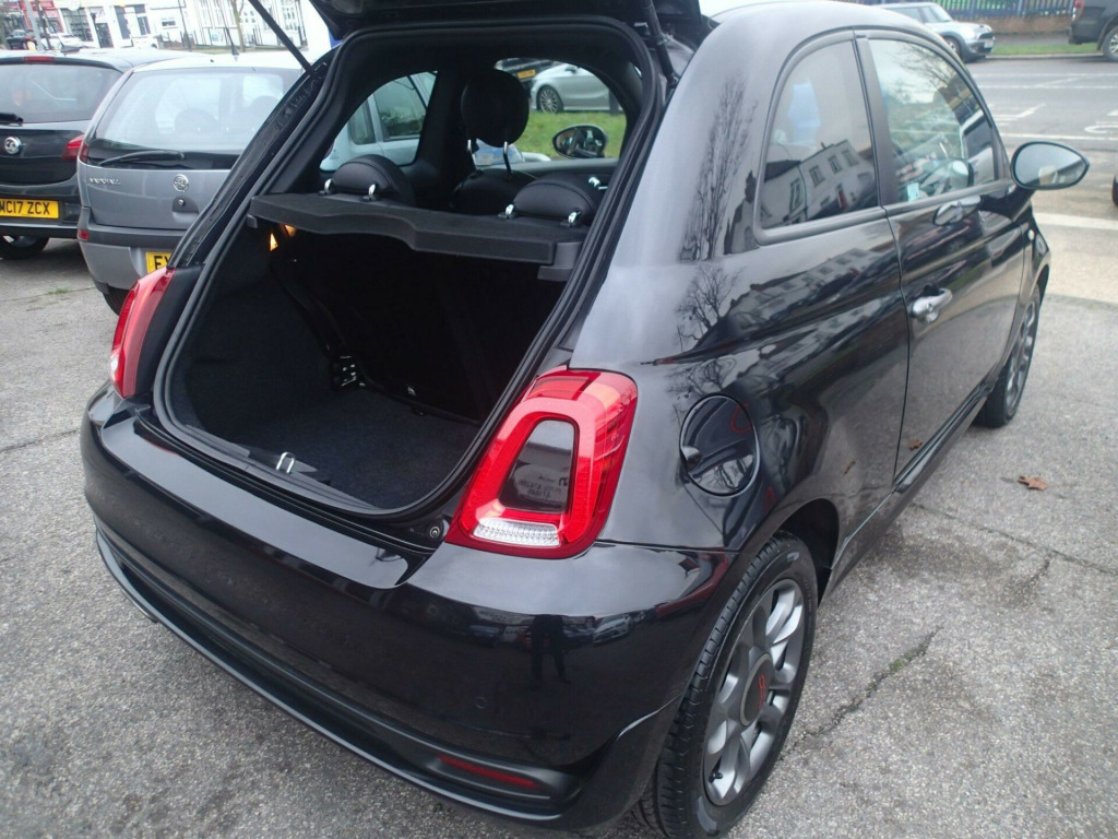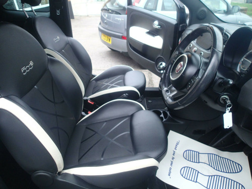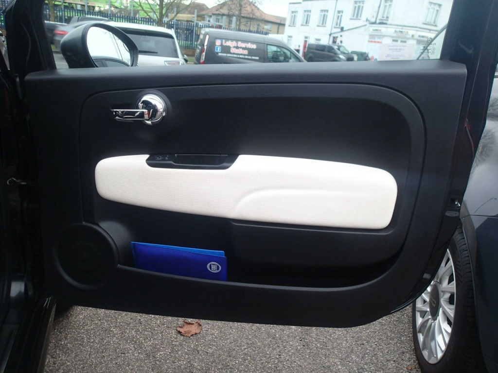 This 2019 Fiat 500 S is presented with a clear vehicle history check, offering you peace of mind. This stylish 1.2 litre petrol model, compliant with Euro 6 emissions standards, is a fantastic choice for navigating city streets and beyond. Inside, you'll find a comfortable cabin equipped with air conditioning to keep you cool, and front seats with a memory function for personalised comfort. The 7in HD touchscreen radio is a central hub for your entertainment and connectivity, featuring Bluetooth, USB, AUX in, and DAB radio.Stay connected on the go with seamless Apple CarPlay and Android Auto integration, allowing you to access your favourite apps safely. Parking is made easier with rear parking sensors, helping you manoeuvre with confidence. This Fiat 500 S also benefits from a low insurance group, indicating that running costs are likely to be more affordable compared to similar vehicles. This combination of practical features, modern technology, and economical running makes this Fiat 500 S a compelling option., ort fabric - black-white with black ambience, 12v point, 15in alloy wheels - satin graphite, 50-50 split folding rear seat with height adjustable head restraints, 7in hd touchscreen radio with bluetooth - usb-aux-in and dab, abs with ebd, air conditioning, apple carplay - android auto connectivity, automatic door locking, body coloured sports bumpers, cruise control, dark tinted rear windows, driver and passenger airbag with dual stage system, drivers knee airbag, dualdrive power steering, esc - electronic stability control, electric front windows, electrically adjustable painted door mirrors with defrosting and external temperature sensor, fix and go puncture repair kit, fog lights, front seat belts with pretensioners - load limiter and fastening sensor, front seats with memory function, hazard light automatic activation during emergency braking, heat reflective windows, heated rear window, height adjustable drivers seat, height adjustable front head restraints, isofix attachment points for child safety seat on rear seat, instrument panel with rev counter, led daytime running lights, leather sport steering wheel with audio controls, rear parking sensors, rear speakers, rear window wiper-washer, remote central locking, satin graphite exterior details, side airbags, speed limiter, sports kit, steering wheel - height adjustment, tpms - tyre pressure monitoring system, window airbags