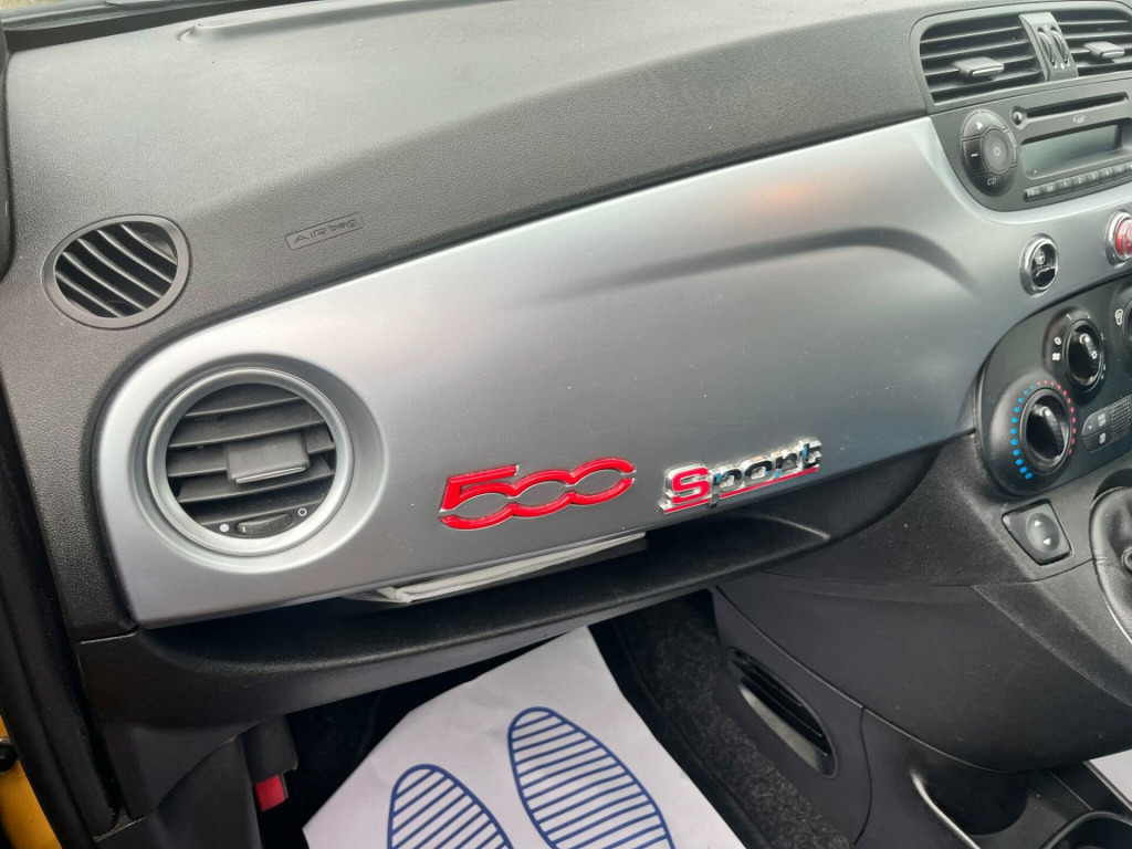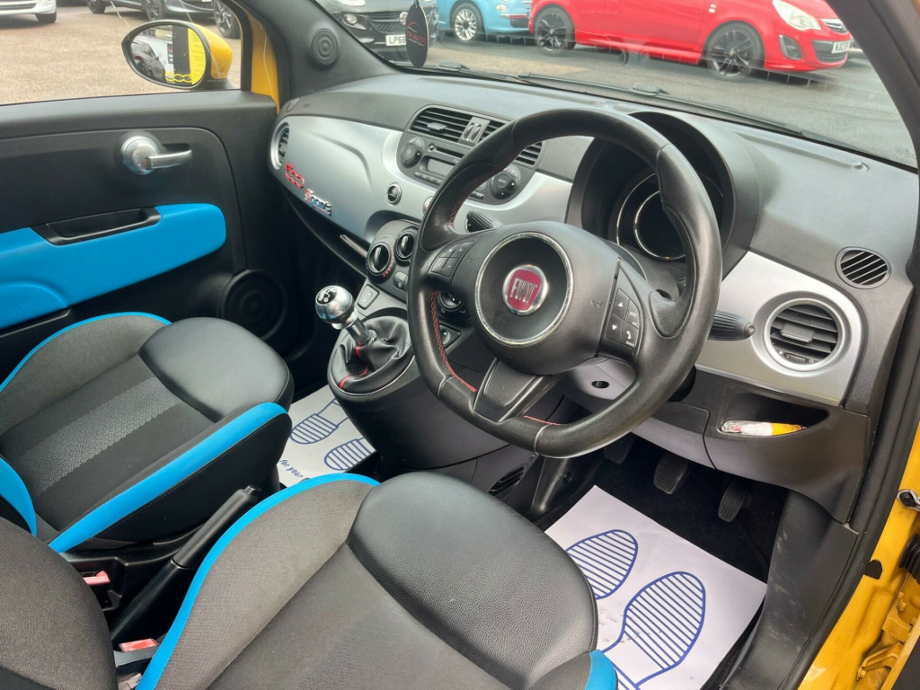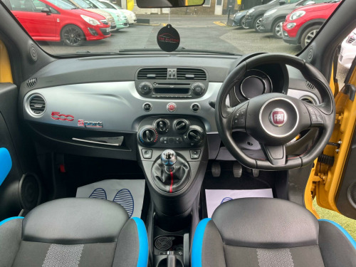 Full 12 Month MOT (no advisories)Full 12 Month AA Breakdown CoverFull HPI CertificateFreshly Serviced & New Cambelt / Waterpump3 Month Warranty A fantastic Fiat 500 s in an excellent condition, Interior & Bodywork!! A great spec including freshly refurbished alloys / sport interior / air con / remote central locking etc..A Brilliant Car, the first to see will buy!!2x Keys / No added fees!! oth - black-blue with black ambience, 12v socket, 15in alloy wheels - 6y8, abs - anti-lock braking system, air conditioning, airbags - driver, airbags - front side, airbags - passenger, bas - brake assistance system, blue&me - hands free system with usb port, body coloured bumpers, chrome exhaust tailpipe, dark tinted rear windows, drivers knee airbag, ebd - electronic brakeforce distribution, electric front windows, electrically adjustable heated door mirrors, fix and go puncture repair kit, heated rear window, height adjustable drivers seat, locking wheel nuts, passenger seat with under seat compartment, power steering - dualdrive electric, radio-cd and mp3 player, rear spoiler, remote central locking, seats - 50-50 split folding rear, seats - sports, seats-back pockets, space saver spare wheel, steering wheel - height adjustment, steering wheel audio controls, thermal windows, usb and aux, window airbags