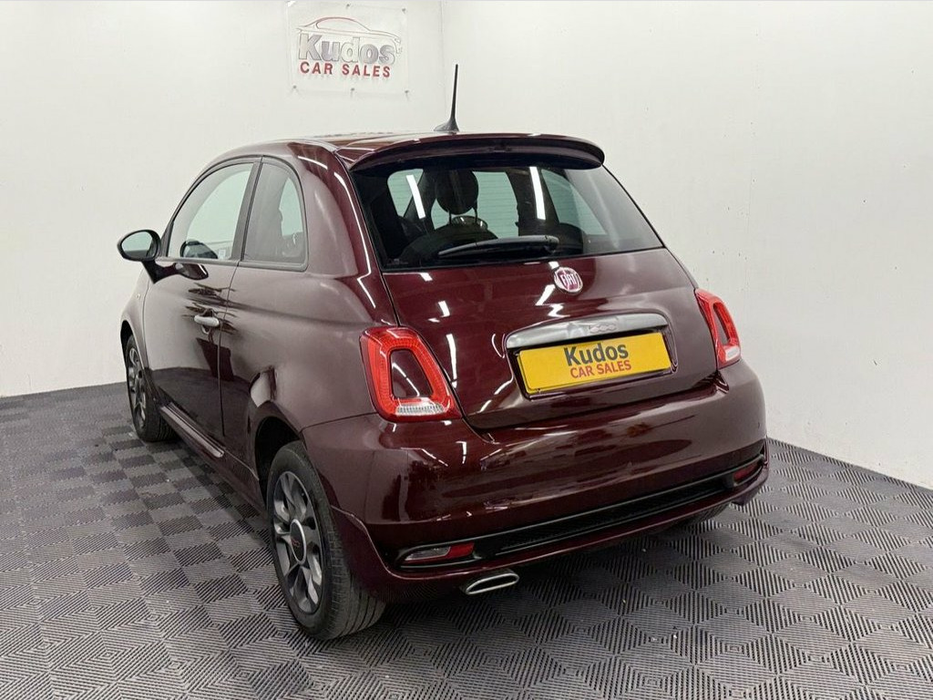 2016 FIAT 500 S 1.2 3dr - STUNNING EXAMPLE IN RARE AVANTGARDE BORDEAUX RED. FINANCE AVAILABLE FROM ONLY £85 per mth. 6 MONTHS WARRANTY INCLUDED. EACH VEHICLE COMES WITH A FREE HPI CLEAR REPORT AND 1 YEAR AA BREAKDOWN COVER. ONLY 64000 MILES. ***ONLY £20 ROAD TAX***ULEZ COMPLIANT. MOT UNTIL 08/11/2026. FULL SERVICE HISTORY AND JUST SERVICED. STUNNING CONDITION INSIDE AND OUT. GREAT SPEC: SPORTS HALF LEATHER INTERIOR, AIRCON, TFT DISPLAY, ECO START STOP ENGINE, CITY MODE STEERING, REMOTE CENTRAL LOCKING, ELECTRIC WINDOWS/MIRRORS, UNMARKED ALLOY WHEELS. PREVIOUS NON SMOKER. FINANCE PACKAGES - With a number of lenders on board i am able to offer Finance to suit individual circumstances, including Sub Prime.All CARS ARE HPI CHECKED AND CLEAR. WARRANTY - At KUDOS CAR SALES every vehicle comes with a FREE warranty through Warranty Wise. Any repairs under warranty can be carried out at your local garage - Extended warranty available on request at extra cost. INCLUDES DOCS AND BOOKS, PAPERWORK AND 2 KEYS. ***ALL PART EXCHANGE'S CONSIDERED*** 12V Socket - Front, 15in Alloy Wheels - Satin Graphite, 50-50 Split Folding Rear Seat with Heigh, 7 Airbags, 7in HD Touchscreen Radio with Bluetooth , 7in TFT Instrument Cluster, ABS with EBD, Air Conditioning, Automatic Door Locking, Avantgarde Bordeaux, Body Coloured Sports Bumpers, Dark Tinted Rear Windows, Door Mirrors - Satin Graphite, Dualdrive Power Steering, Electric Front Windows, Electrically Adjustable Painted Door Mir, ESC - Electronic Stability Control, Fix and Go Puncture Repair Kit, Fog Lights, Front Seats with Memory Function, Fuel Cap with Tap, GSI - Gear Shift Indicator, Hazard Light Automatic Activation During, Heat Reflective Windows, Heated Rear Window, Height Adjustable