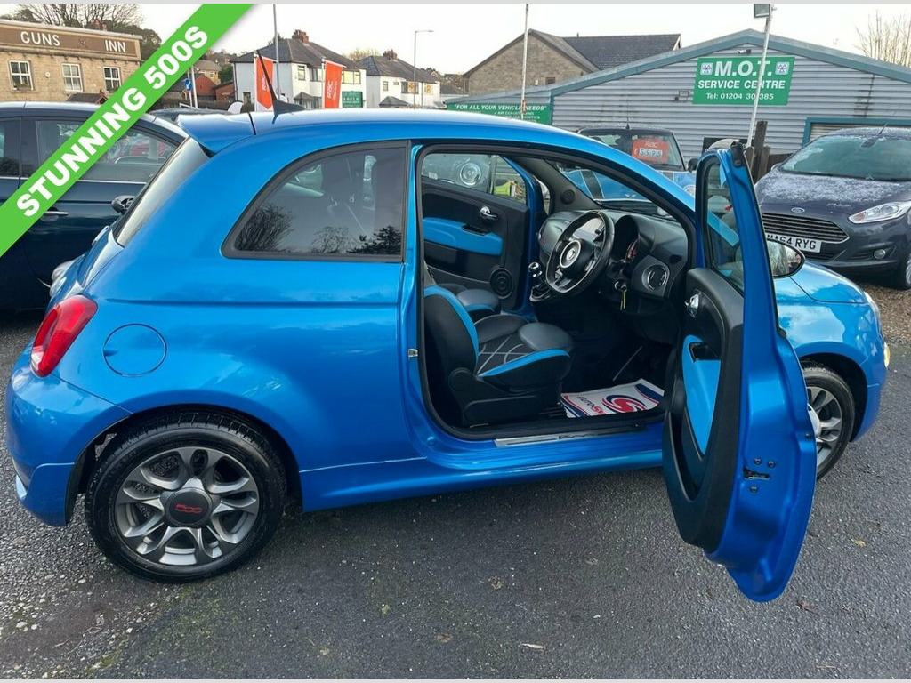 WOW , JUST ARRIVED WE HAVE ANOTHER 500'S' IN STUNNING ELECTRONICA BLUE WITH CONTRASTING BLACK & BLUE HALF LEATHER SPORTS INTERIOR, RARE OPTION OF FACTORY SAT NAV PLUS ALL THE USUAL 500 'S' SPEC INCLUDING AIR-CON, ELECTRIC WINDOWS & MIRRORS, ABARTH LOOK BODYKIT & ALLOYS, LOW MILEAGE EXAMPLE WITH FULL SERVICE HISTORY RECENTLY COMPLETED AND ONLY £20 ROAD TAX, SUPPLIED WITH A COMPREHENSIVE RAC WARRANTY, FINANCE AND DELIVERY ARRANGED, FOR MORE DETAILS OR TO ARRANGE A VIEWING PLEASE CALL 01204302889 OR 07778917928 OR 07799675426 Apple CarPlay - Android Auto Connectivit, 15in Alloy Wheels - Satin Graphite, 50-50 Split Folding Rear Seat with Heigh, 7 Airbags, 7in HD Touchscreen Radio with Bluetooth , 7in TFT Instrument Cluster, ABS with EBD, Air Conditioning, Automatic Door Locking, Body Coloured Sports Bumpers, Cruise Control, Dark Tinted Rear Windows, Door Mirrors - Satin Graphite, Driver and Passenger Airbag with Dual St, Dualdrive Power Steering, ESC - Electronic Stability Control, Electric Front Windows, Electrically Adjustable Painted Door Mir, Fix and Go Puncture Repair Kit, Fog Lights, Front Seats with Memory Function, GSI - Gear Shift Indicator, Hazard Light Automatic Activation During, Heat Reflective Window