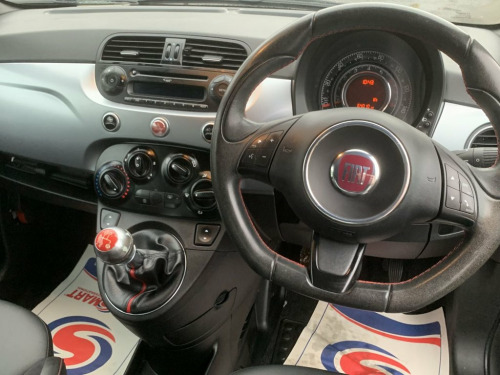 Fiat 500 S in metallic grey with service history. Comes with 16" alloy wheels, air conditioning, electric windows, electric mirrors, half leather trim, rear privacy glass, its a 5 speed, has bluetooth, voice command, a radio, aux port, multifunction steering wheel, 2 remote keys and road tax is only £35 per year. THE CAR WILL HAVE A SERVICE AND 12 MONTHS MOT / PART EXCHANGE IS ALWAYS WELCOME / FREE 12 MONTH AA ROADSIDE RECOVERY INCLUDED / FINANCE IS AVAILABLE VIA OUR WEBSITE LINK / THE CAR HAS BEEN HPI AND MILEAGE CHECKED, ALL OK / WE ARE A FAMILY RUN BUSINESS AND HAVE BEEN TRADING FOR OVER 30 YEARS, WE OFFER DELIVERY IN MAINLAND UK (Please ask for details), WE ARE HERE TO HELP YOU! PLEASE CONTACT US WITH ANY QUESTIONS 12V Socket, 15in Alloy Wheels - 6Y8, 16in Alloy Wheels - 5A6, ABS - Anti-Lock Braking System, Air Conditioning, Airbags - Driver, Airbags - Front Side, Airbags - Passenger, BAS - Brake Assistance System, Blue&Me - Hands Free System with USB, Body Coloured Bumpers, Chrome Exhaust Tailpipe, Cloth - Dark Grey with Black Ambience, Dark Tinted Rear Windows, Drivers Knee Airbag, EBD - Electronic Brakeforce Distribution, Electric Front Windows, Electrically Adjustable Heated Door Mirr, Electroclash Grey, Fix and Go Puncture Repair Kit, Fog Lights, Heated Rear Window, Height Adjustable Drivers Seat, Locking Wheel Nuts, Passenger Seat with Under Seat Compartme, Power Steering - Dualdrive Electric