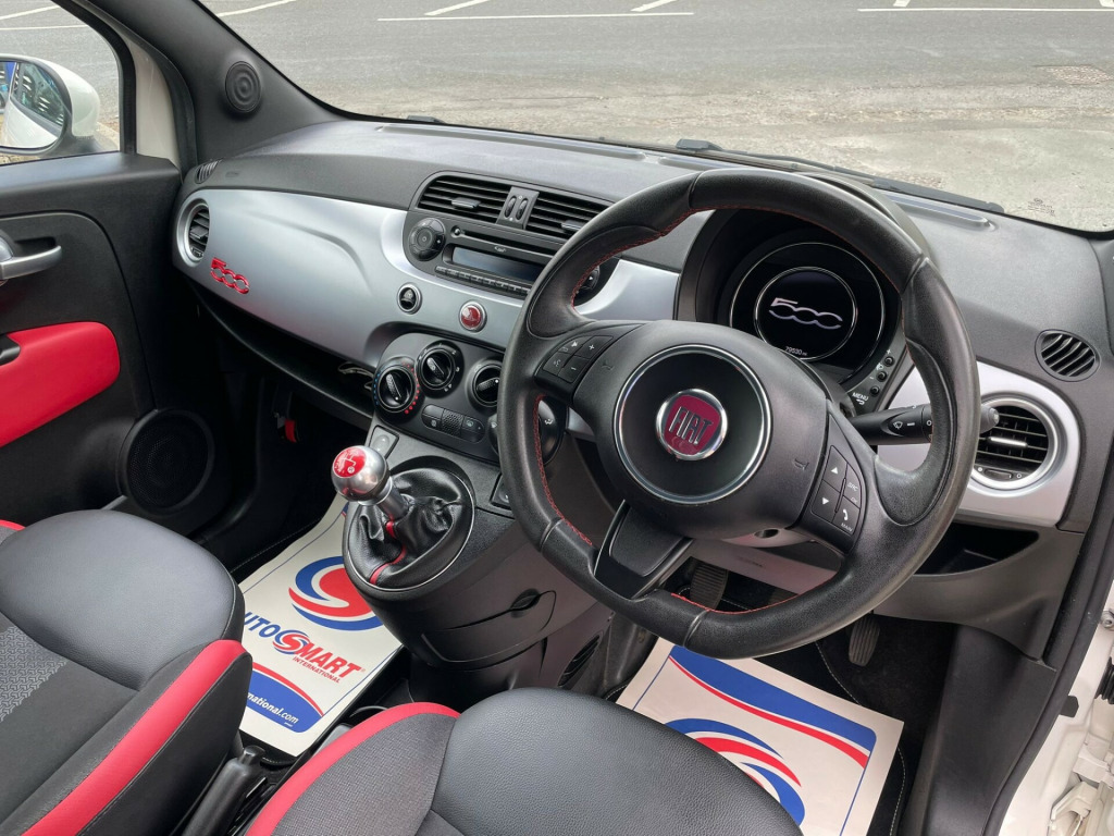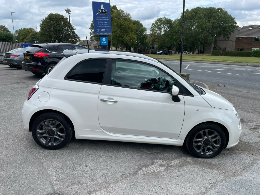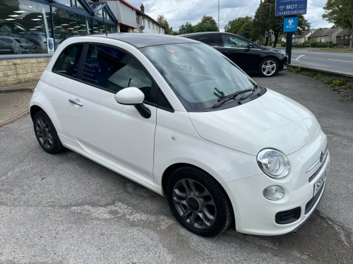 CHEAP TAX! LOW INSUREANCE!TOP SPEC!Fiat 500 S with 2 keys part service history and just three careful owners. With a service to requirements from ourselves 12 months mot and RAC Warranty. Why not call us now on 01422240240 to arrange a viewing or test drive! From a trusted family run buisness., AUTO TRADER v socket - front, blue&me - hands free system with usb port, radio-cd and mp3 player, tft screen - colour 7in, 15in alloy wheels - 6y8, body coloured bumpers, body coloured door mirrors, dark tinted rear windows, electric front windows, electrically adjustable heated door mirrors, fix and go puncture repair kit, locking wheel nuts, space saver spare wheel, thermal windows, abs - anti-lock braking system, asr - anti-slip regulation, airbags - driver, airbags - front side, airbags - passenger, bas - brake assistance system, drivers knee airbag, ebd - electronic brakeforce distribution, esp - electronic stability programme, hill holder, msr - motor slip regulation, remote central locking, steering wheel - black, window airbags, air conditioning, grab handle, height adjustable drivers seat, seats - passengers memory function, seats-back pockets, split folding 50:50 rear seat, steering wheel - height adjustment, steering wheel - leather/sports abarth, storage under passenger seat, dualdrive power steering, exterior temperature sensor, gsi - gear shift indicator, tyre pressure monitor system