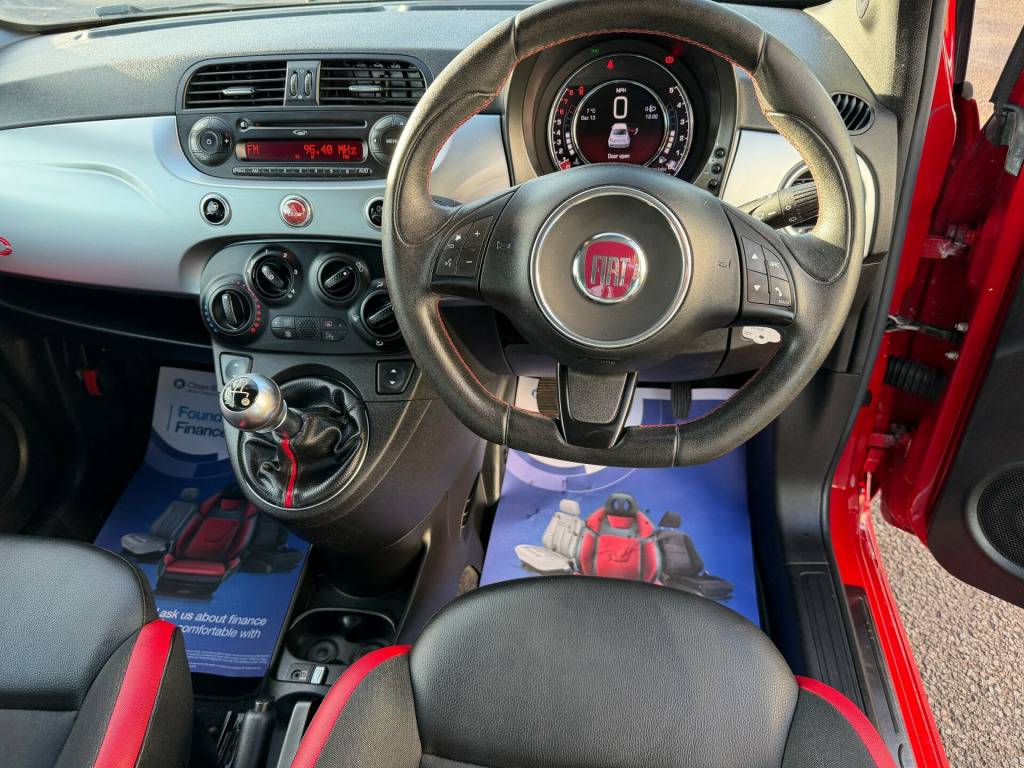 NEW STOCK JUST ARRIVED - This 2014 Fiat 1.2 S Hatchback 3dr Petrol Manual Euro 6 (s/s) (69 bhp) is a stylish and practical vehicle with only 63826 miles on the clock, making it a reliable choice for any driver. Its compact hatchback design and 3 doors make it easy to maneuver and park in urban settings, while still offering ample space for up to 4 passengers. The car runs on petrol and is ULEZ compliant, ensuring it meets the latest emissions standards. With an MOT that expires on 21/10/2026, you can enjoy peace of mind knowing it's roadworthy for years to come. Inside, the Cloth - Black-Red with Black Ambience upholstery adds a touch of sophistication, while features like the Blue&Me hands-free system and USB port, as well as the Radio-CD and MP3 player, provide modern convenience. With a striking Pasodoble Red exterior, this Fiat is sure to turn heads on the road., v socket - front, blue&me - hands free system with usb port, radio-cd and mp3 player, tft screen - colour 7in, 15in alloy wheels - 6y8, body coloured bumpers, body coloured door mirrors, dark tinted rear windows, electric front windows, electrically adjustable heated door mirrors, fix and go puncture repair kit, locking wheel nuts, space saver spare wheel, thermal windows, abs - anti-lock braking system, asr - anti-slip regulation, airbags - driver, airbags - front side, airbags - passenger, bas - brake assistance system, drivers knee airbag, ebd - electronic brakeforce distribution, esp - electronic stability programme, hill holder, msr - motor slip regulation, remote central locking, steering wheel - black, window airbags, air conditioning, grab handle, height adjustable drivers seat, seats - passengers memory function, seats-back pockets, split folding 50:50 rear seat, steering wheel - height adjustment, steering wheel - leather/sports abarth, storage under passenger seat, dualdrive power steering, exterior temperature sensor, gsi - gear shift indicator, tyre pressure monitor system