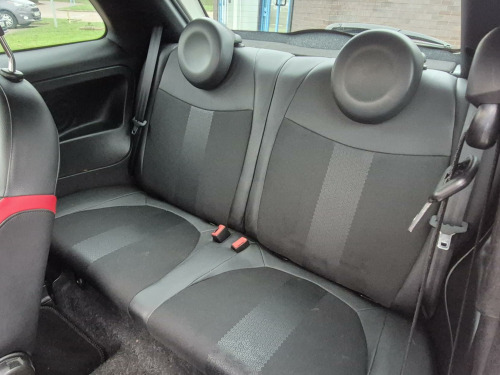 Step inside, and you’ll be greeted by a stylish interior featuring cloth upholstery in a striking black-red combination with a black ambience. This eye-catching design not only enhances the aesthetic appeal of the cabin but also provides a comfortable and inviting atmosphere for both driver and passengers. The sporty look of the seats perfectly complements the Fiat 500’s playful character, making every journey a delightful experience.