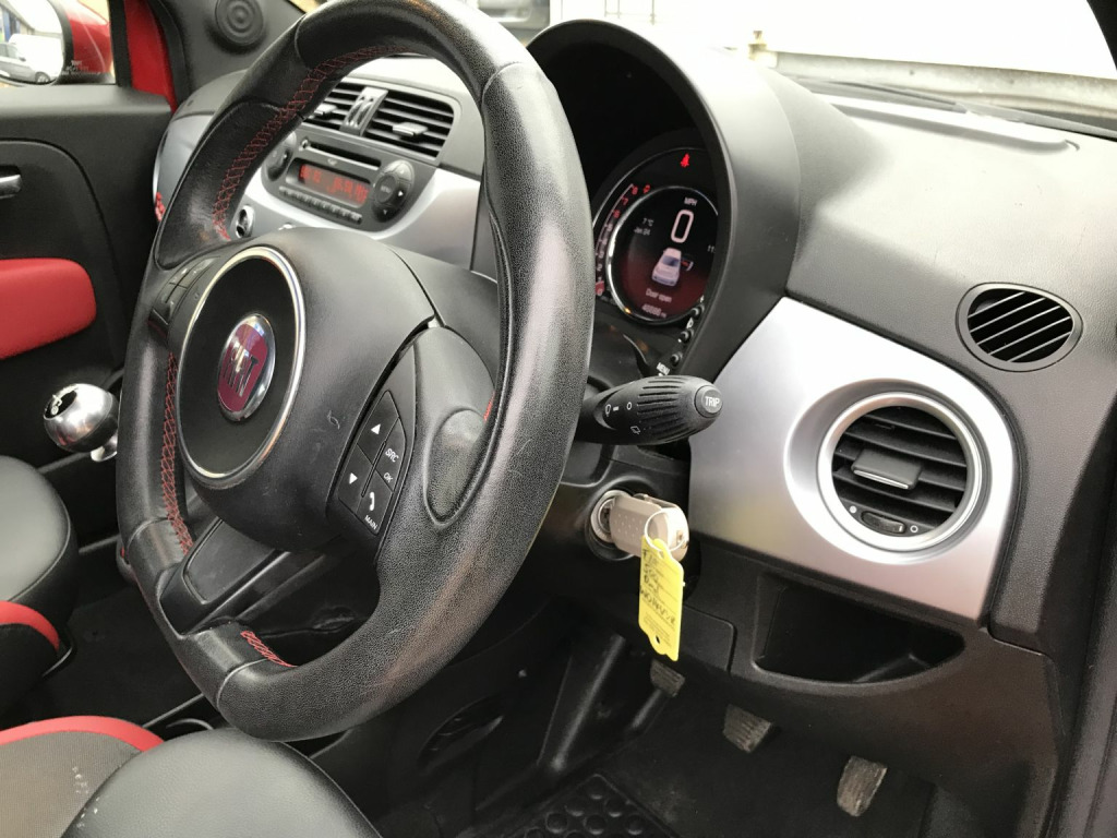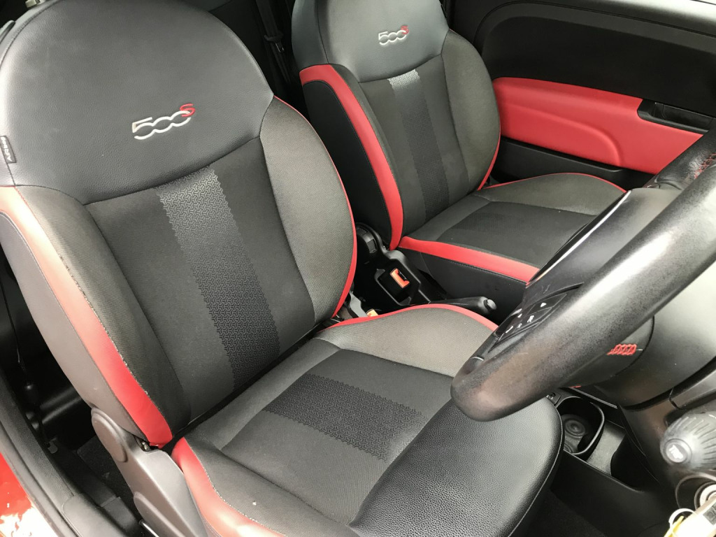 2014 '14' Fiat 500 1.2 SFinance available, please call for details.INTERIOR: Black / red 1/2 leather interior. Electric windows. Electric mirrors. Remote central locking. Power steering. Multiple air bags. Factory radio / cd player, with steering wheel controls.EXTERIOR: Red paintwork, colour coded bumpers and mirrors. 16'' Fiat alloy wheels.MECHANICALS: 1242cc petrol engine. 5 speed manual gearbox. All running gear superb, and the car drives very well. Fresh 2 x tyres, both sides front suspension, engine service and cambelt kit etc at 81k.PAPERWORK: Cat 'N' repaired car. Full logbook. Current MOT cert expires December 22nd 2026. Invoice for fresh engine service and cambelt kit etc.OVERALL: Very cool little car. Looks great and drives well. Brilliant economy and nippy performance. Just £35 annual road TAX. Fresh engine service and cambelt kit etc. Long MOT.,
