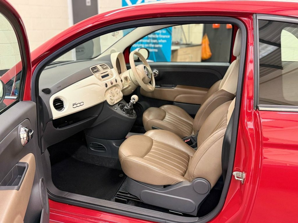 BUY NOW PAY FEB 2026* Finance From 10.9% APR, Part Exchange Welcome, Free RAC Warranty & Breakdown Cover, Pasodoble Red With White Roof & Retro Tobacco Leather Seating With Ivory Ambience, Only 1 Previous Owner From New, Cambelt Kit & Water Pump Replaced In August 2022, 4 Services At 769, 2,695, 16,836 & 47,993 Miles, ULEZ EURO 6, £20 Road Tax, Rear Parking Sensors, Bluetooth, USB Aux In, Tinted Glass, Air Conditioning, Smart Phone Connectivity, 16" Retro Alloy Road Wheels With Security Bolts & Key, Electric Windows, Compact Disc Player, Electric Mirrors, Anti Theft System, Anti Lock Braking, Multiple Air Bags, On Board Fuel Trip Computer, Power Assisted Steering, Traction Control, Daytime Running Lights, Remote Locking With Tailgate Release, Two Key, Isofix, Tyre Pressure Monitoring System, Parcel Shelf, Leather Steering Wheel, 5 Speed Manual Gearbox, Carpet Mats, Space Saver Spare Wheel With Tool Kit, *If Financed. 16in Alloy Wheels - Vintage, ABS - Anti-Lock Braking System, Aerial - White, Air Conditioning, Airbags - Driver, Airbags - Front Side, Airbags - Passenger, Blue&Me - Hands Free System, Body Coloured Bumpers, Chrome Kit, Dashboard - White, Daytime Running Lights, Door Handles - Chrome, Door Mirrors - White, Drivers Knee Airbag, Dualdrive Power Steering, EBD - Electronic Brakeforce Distribution, ESP - Electronic Stability Programme, Electric Front Windows, Electrically Adjustable Heated Door Mirr, Exterior Logos - Vintage Fiat, Exterior Temperature Sensor, Head Restraints - Rear Height Adjustment, Height Adjustable Drivers Seat, Leather Gear Knob, Leather Steering Wheel, Radio-CD and MP3 P