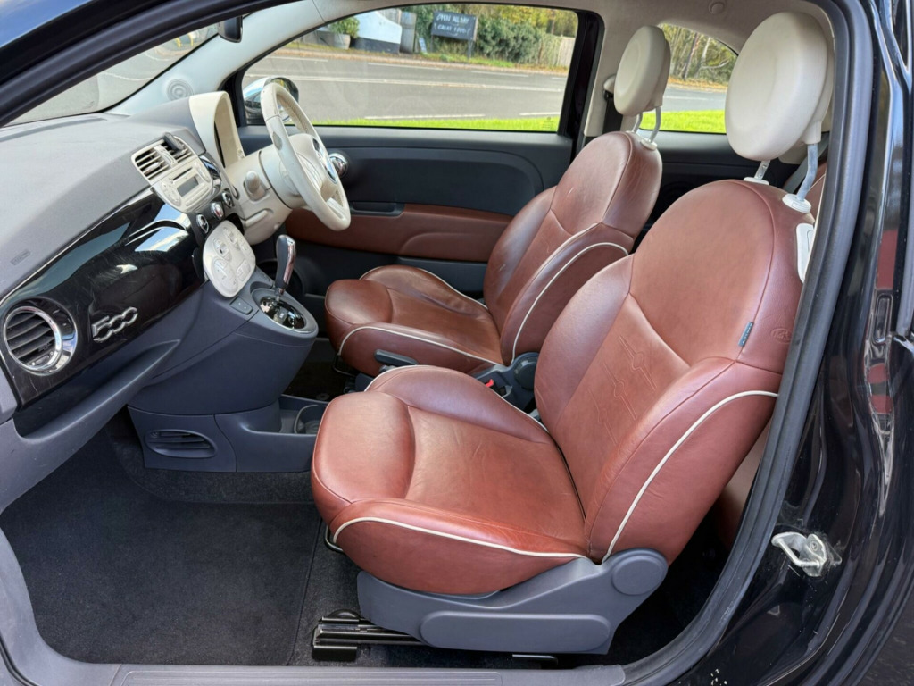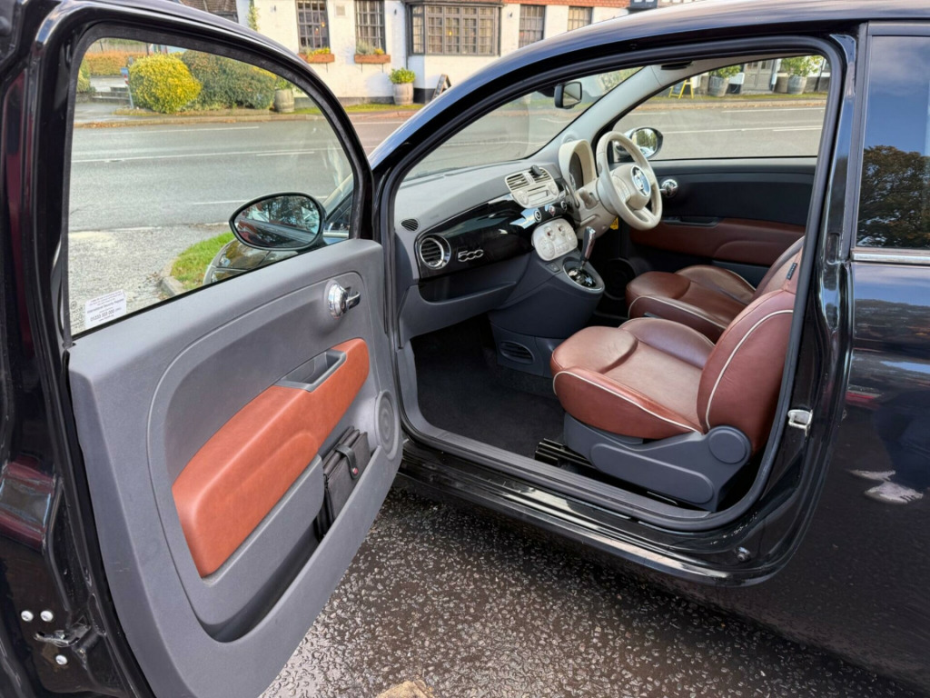 This 2008 Fiat 500 Lounge boasts a clear vehicle history, offering you peace of mind with your purchase. Powered by a responsive 1.4 litre petrol engine, this stylish hatchback is presented in the desirable Lounge trim. You'll appreciate the comfort provided by the auto climate control, ensuring a pleasant cabin temperature whatever the weather. For added convenience and safety, it features rear parking sensors to assist with manoeuvring, and the interior is enhanced with premium leather upholstery. The exterior is further distinguished by chrome door mirror housings and front fog lights, adding a touch of sophistication.The Fiat 500 Lounge is designed to be an enjoyable and economical choice. Its 0 to 62 miles per hour acceleration in just 10.5 seconds demonstrates its nippy performance, making it well suited for city driving and beyond. Furthermore, its placement in a low insurance group indicates that running costs are kept to a minimum, making this a particularly attractive option compared to many other vehicles in its class. to climate control, rear parking sensor, front foglights, chrome door mirror housings, leather- leather, 15in two tone sports alloy wheel, 15in 18spoke alloy wheels, 15in alloy wheels, air conditioning, black ambience, body colour door mirrors, fixed glass sunroof with sunblind, ivory ambience