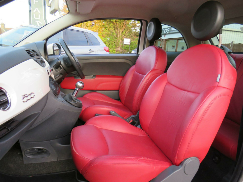 JUST ARRIVED IN PART EXCHANGE IS THIS FIAT 500 1.4 SPORT, WHICH BOASTS: JUST 1 OWNER FROM NEW, SERVICE HISTORY: SERVICED AT: 10K, 20K, 30K, 40K, 45K, 60K & A NEW SERVICE AT 70K, MOT TILL: 10/10/2026, 15'' ALLOY WHEELS, FULL RED LEATHER INTERIOR, AIR CONDITIONING, ELECTRIC WINDOWS, REMOTE CENTRAL LOCKING & 2 KEYS, THIS CAR IS IN GOOD CONDTION & DRIVES WELL, IDEAL FIRST CAR OR SMALL ECONOMICAL RUN-AROUND, MUST BE SEEN & DRIVEN ***PLEASE VISIT OUR WEBSITE FOR MORE VEHICLES*** * ALL OF OUR VEHICLES COME WITH WARRANTY * PART EXCHANGE WELCOME* CALL MOBILE ANYTIME: 07775568545, in alloy wheels, 15in sports alloy wheels, abs - anti-lock braking system, air conditioning, airbags - driver, airbags - front side, airbags - passenger, black ambience, blue&me, body colour door mirrors, chrome kit, drivers knee airbag, ebd - electronic brakeforce distribution, electric front windows, electrically adjustable heated door mirrors, fixed glass roof with sunblind, folding rear seatbacks, isofix child seat attachments, ivory ambience, lounge interior trim, power steering - dualdrive electric, radio-cd and mp3 player, remote central locking, space saver spare wheel, split folding 50:50 rear seat, steering wheel - leather with audio controls, window airbags, climate control - automatic dual zone, auto climate control, fog lights, leather- leather