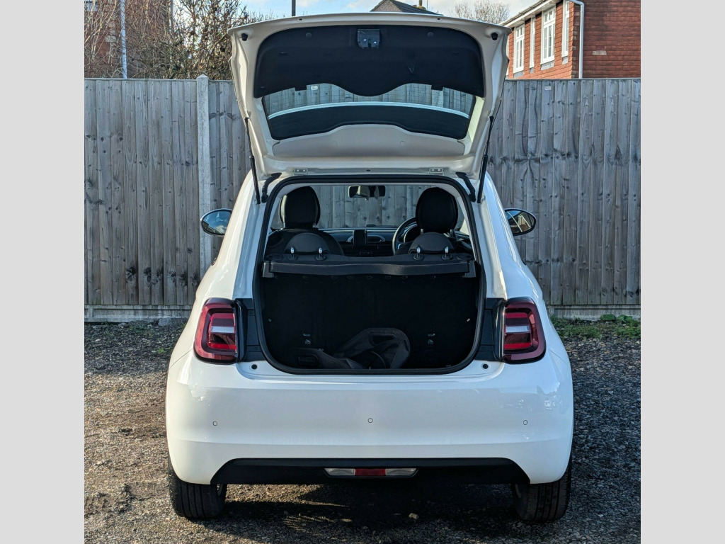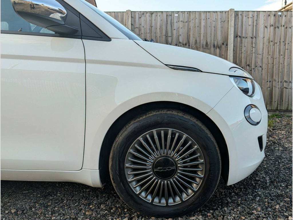 This 2022 Fiat 500e Action boasts a full dealership service history, with its last service completed on 17 January 2026 at 15,700 miles, indicating excellent care for its low mileage. It comes equipped with a dusk sensor for automatic headlights, rear parking sensors to aid manoeuvring, and a smartphone cradle with Bluetooth connectivity. For your comfort, it also features air conditioning.The Fiat 500e Action is a smart choice for urban driving, offering convenient charging options. A full charge at home using a 7kW charger takes approximately 4 hours, while rapid public charging can take you from empty to 80% in just 34 minutes. This particular vehicle is supplied with 12 months MOT for your peace of mind and benefits from a 3 month warranty. Its low mileage for a 2022 model, combined with its comprehensive service record, suggests it has been well maintained and is ready for its next owner. v socket - front, 15in steel wheels - style, 4-way manually adjustable front seats, 7in tft digital instrument cluster, abs - anti-lock braking system, air conditioning, airbags - driver, airbags - passenger, attention assist, autonomous emergency braking - aeb, bas - brake assistance system, central console with storage space, charging cable - mode 3, dusk sensor, e-call - sos, ev mode selector, electric windows - drivers one touch up-down, electrically adjustable body coloured door mirrors, electronic parking brake, halogen headlights, intelligent speed assist and traffic sign recognition, keyless start, led daytime running lights, led rear lights, lane centering assist, rack and pinion with electric power steering, rear parking sensors, smartphone cradle with bluetooth, speakers x4, steering wheel audio controls, vehicle start button, welcome lights, x2 front usb ports, fabric - black - black dashboard
