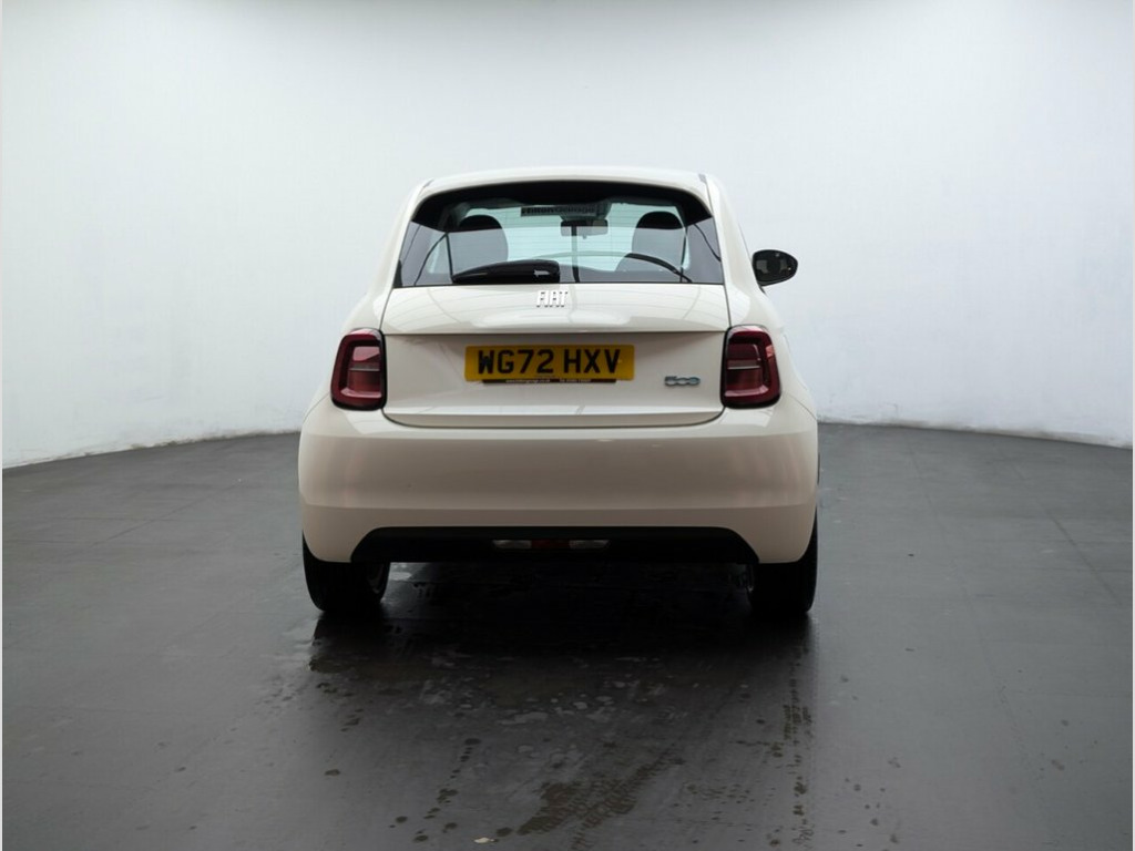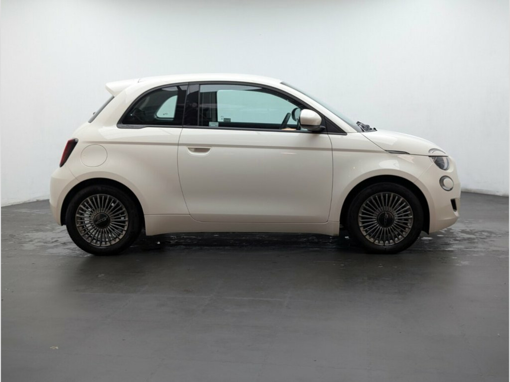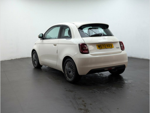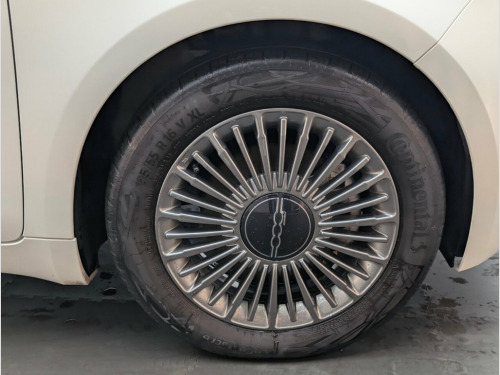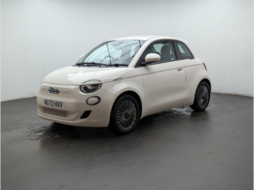 16" alloys, Navigation, Apple CarPlay, Lane keeping assist and Cruise control. 2 services - last service done at 9955 miles on 27/06/2025. This 2022 Fiat 500e Icon boasts exceptionally low mileage for its age, having covered just 11738 miles, and comes with a clear vehicle history check. This electric Icon model features a 42 kWh battery offering a maximum range of 199 miles when new. For convenience, it includes a Mode 2 charging cable, automatic air conditioning with climate control, and seamless integration with Wireless CarPlay and Android Auto. The dusk sensor automatically activates the headlights, enhancing your driving experience. The Fiat 500e Icon stands out with its efficient electric powertrain, providing a substantial range and quick charging capabilities. A full charge at home using a 7kW charger takes approximately 6 hours, while rapid public charging can take you from empty to 80% in just 35 minutes. These charging times and the impressive range demonstrate how this electric Fiat 500e offers a practical and modern driving solution compared to other vehicles in its class. 10.25in Infotainment Touchscreen with Na, 12V Socket - Front, 16in Alloy Wheels, 4-Way Manually Adjustable Front Seats, 7in TFT Digital Instrument Cluster, ABS - Anti-Lock Braking System, Airbags - Driver, Airbags - Passenger, Attention Assist, Automatic Air Conditioning, Autonomous Emergency Braking - AEB, Central Console with Storage Space, Centre Console with Storage Space, Charging Cable - Mode 2, Charging Cable - Mode 3, Cruise Control, DAB Radio, Dusk Sensor, E-Call - SOS, Eco-Leather Steering Wheel, Electric Windows - Driver and Passenger , Electrically Adjustable Body Coloured Do, Electronic Parking Brake, EV Mode Selector, Fabric - Dark Grey/Black - Body Coloured, Fix and Go Punctur