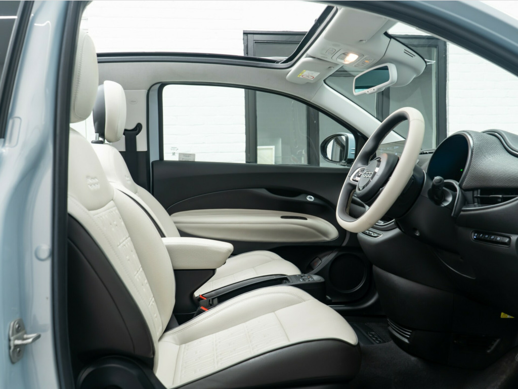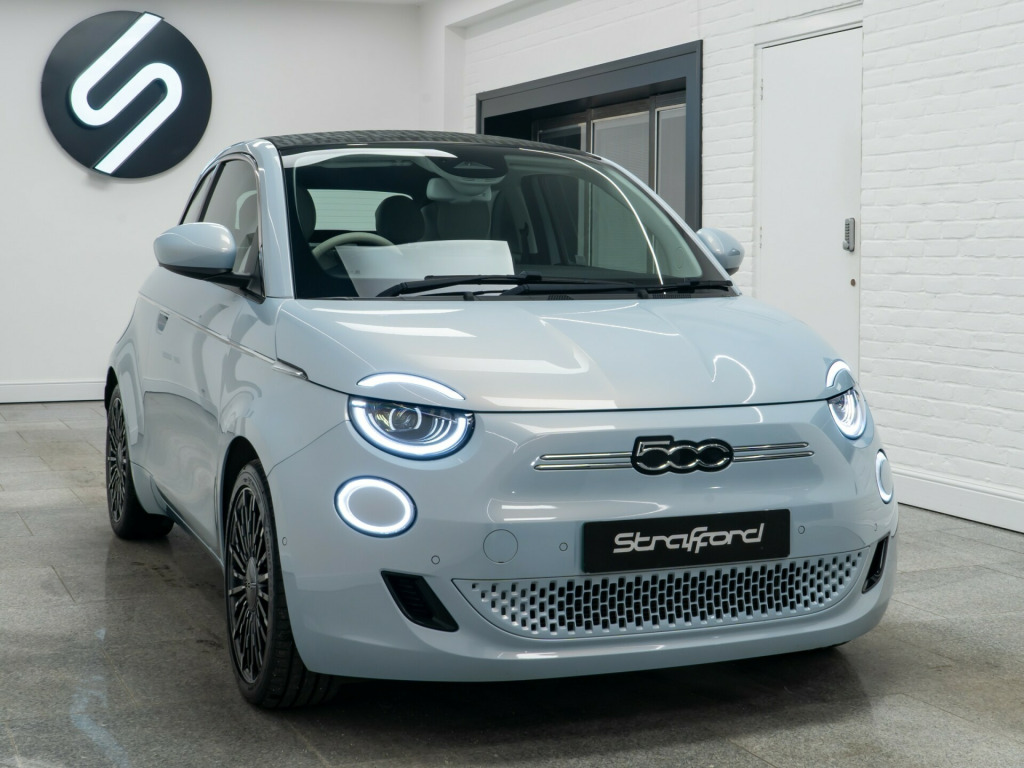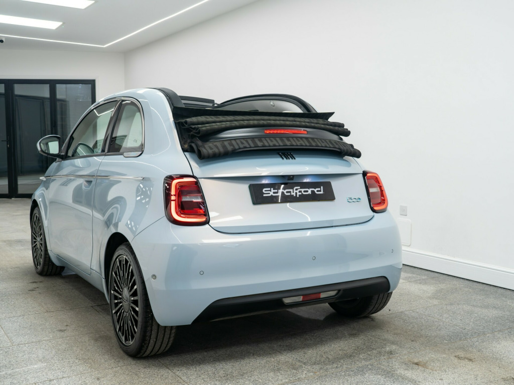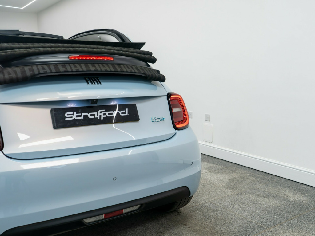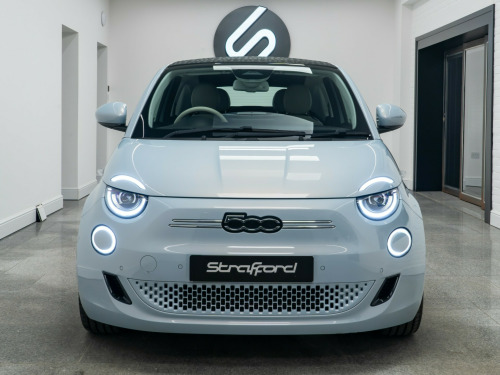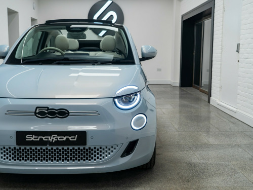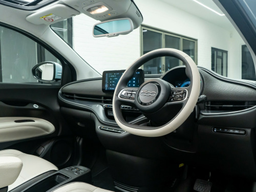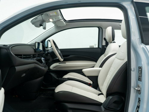 Available for sale from our Brighton location is this Fiat 500e Convertible covering 18765 miles from new. The vehicle is 'La Prima' trim level, this being a £3,000 factory upgrade adding the below equipment list to the already well equipped 'Icon' model. - 6 speaker sound system (vs 4 speakers)- Integrated navigation system in the 10.25'' infotainment- Wireless smartphone charging pad- 17'' Diamond Cut alloy wheels (larger & more premium vs 16'')- 6-way adjustable driver seat (vs 4-way)- Front central armrest- Floor mats- Closed central console (more storage)- Heated front seats- Heated, body-coloured door mirrors- Passive entry (keyless entry) in addition to Keyless Go- Auto high/low beam headlights- Electrochromic (auto-dimming) rearview mirror- Rearview parking camera- Front, rear & side parking sensors (vs rear only)- Adaptive Cruise Control- Lane Centering- Traffic Jam Assist- Blind Spot Detection- Chrome side mouldings, with black lower mouldings mounting La Prima 500 badging - APPLE CARPLAY/ANDROID AUTOThis particular car is finished in Celestial Blue, this being a £650 option available for special order from Fiat Factory. Fiat Ivory ''Cannelloni'' Eco-Leather Seats / Fiat Monogram Capote combination is fitted to the interior giving the inside a spacious and high-end feel. Fiat recommend services for this model every 9,000 miles. The first service was carried out at 5879 milesat Fiat Warwick, and the second with ourselves in preparation for sale at 18,765 miles, leaving its next due at around 27,000 miles. With the car comes its 2 original keys, book packs, HPI Clear report, new MOT with no advisory items, and V5 logbook showing 1 former keeper. Finance for business and personal users is available from our panel of direct-to-dealer lenders, and part exchange is welcome.
