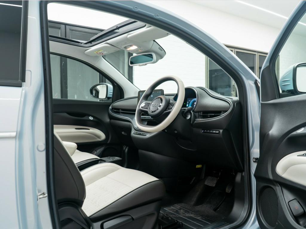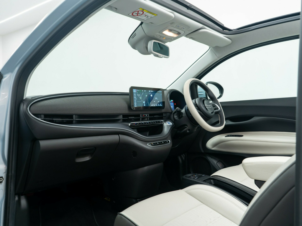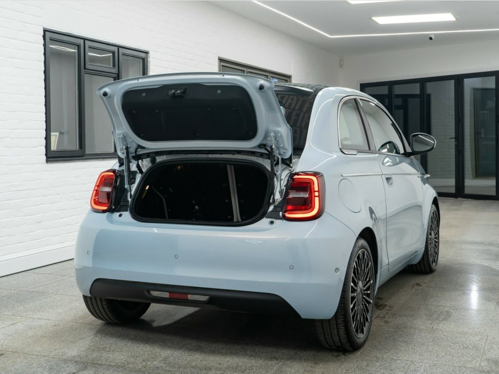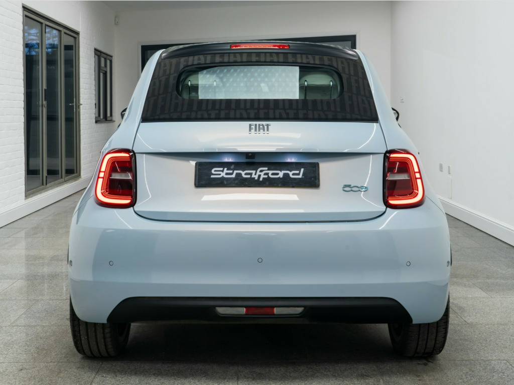 Available for sale from our Brighton location is this Fiat 500e Convertible covering 18765 miles from new. The vehicle is 'La Prima' trim level, this being a £3,000 factory upgrade adding the below equipment list to the already well equipped 'Icon' model. - 6 speaker sound system (vs 4 speakers)- Integrated navigation system in the 10.25'' infotainment- Wireless smartphone charging pad- 17'' Diamond Cut alloy wheels (larger & more premium vs 16'')- 6-way adjustable driver seat (vs 4-way)- Front central armrest- Floor mats- Closed central console (more storage)- Heated front seats- Heated, body-coloured door mirrors- Passive entry (keyless entry) in addition to Keyless Go- Auto high/low beam headlights- Electrochromic (auto-dimming) rearview mirror- Rearview parking camera- Front, rear & side parking sensors (vs rear only)- Adaptive Cruise Control- Lane Centering- Traffic Jam Assist- Blind Spot Detection- Chrome side mouldings, with black lower mouldings mounting La Prima 500 badging - APPLE CARPLAY/ANDROID AUTOThis particular car is finished in Celestial Blue, this being a £650 option available for special order from Fiat Factory. Fiat Ivory ''Cannelloni'' Eco-Leather Seats / Fiat Monogram Capote combination is fitted to the interior giving the inside a spacious and high-end feel. Fiat recommend services for this model every 9,000 miles. The first service was carried out at 5879 milesat Fiat Warwick, and the second with ourselves in preparation for sale at 18,765 miles, leaving its next due at around 27,000 miles. With the car comes its 2 original keys, book packs, HPI Clear report, new MOT with no advisory items, and V5 logbook showing 1 former keeper. Finance for business and personal users is available from our panel of direct-to-dealer lenders, and part exchange is welcome.