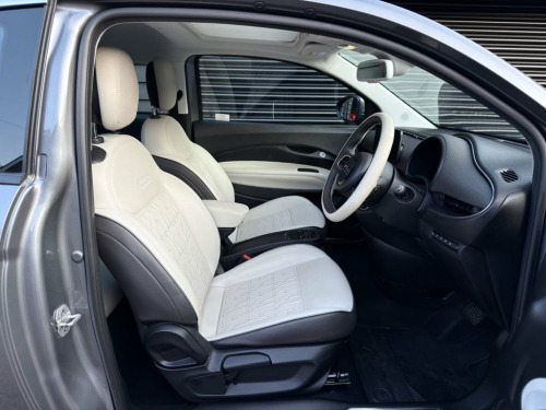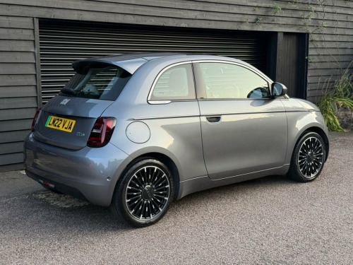 This 2022 Fiat 500e La Prima is a superb example, having had only one owner since new. As a fully electric vehicle, it offers a smooth and efficient driving experience. The 42 kWh battery provides a maximum range of 193 miles, making it ideal for both city commutes and longer journeys. Charging is convenient, with a full charge at home taking approximately 6 hours using a 7kW charger, and rapid public charging can replenish the battery from empty to 80% in as little as 35 minutes. This La Prima trim boasts a comprehensive suite of features designed for comfort and safety, including the Eye Park Pack with Blind Spot Assistance, front and rear parking sensors, and a rear camera. It also features an electric sunroof for an airy cabin feel, and the Fiat Co-Driver Pack which adds adaptive cruise control. Furthermore, the Winter Pack ensures comfort with heated seats, and it comes complete with an Easy Wallbox for home charging. The inclusion of the Fiat Co-Driver Pack, alongside the Eye Park Pack's blind spot assistance and parking aids, clearly sets this Fiat 500e apart from many other electric vehicles. These advanced driver assistance systems contribute to a more relaxed and secure driving experience. The electric sunroof adds a touch of open air enjoyment, while the heated seats from the Winter Pack provide welcome warmth during colder months. This well equipped, single owner electric Fiat 500e La Prima represents a compelling choice for those seeking a stylish and Electric opening sunroof, 10.25in Infotainment Touchscreen with Na, 12V Socket - Front, 17in Alloy Wheels, 6-Way Manually Adjustable Front Seats, 7in TFT Digital Instrument Cluster, ABS - Anti-Lock Braking System, Airbags - Driver, Airbags - Passenger, Attention Assist, Automatic Air Conditioning, Automatic High-Low Beam, Autonomous Emergency Braking - AEB, Bi-Colour Eco-Leather Steering Wheel wit, Central Console with Sliding Door Closin, Centre Console with Sliding Door Storage, Charging Cable - Mode 3, Chrome Exterior Accents, Cruise Control, DAB Radio, Dusk Sensor, E-Call - SOS, EV Mode Selector, Electric Windows - Driver and Passenger , Electrically Adjustable and Heated Body , Electroc