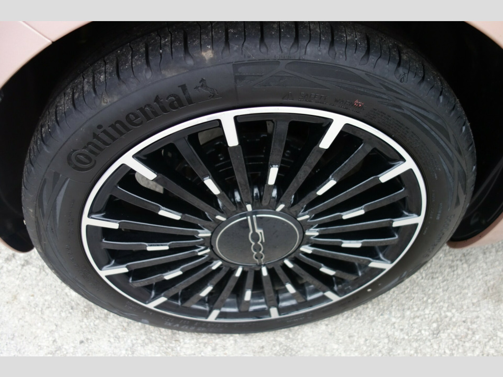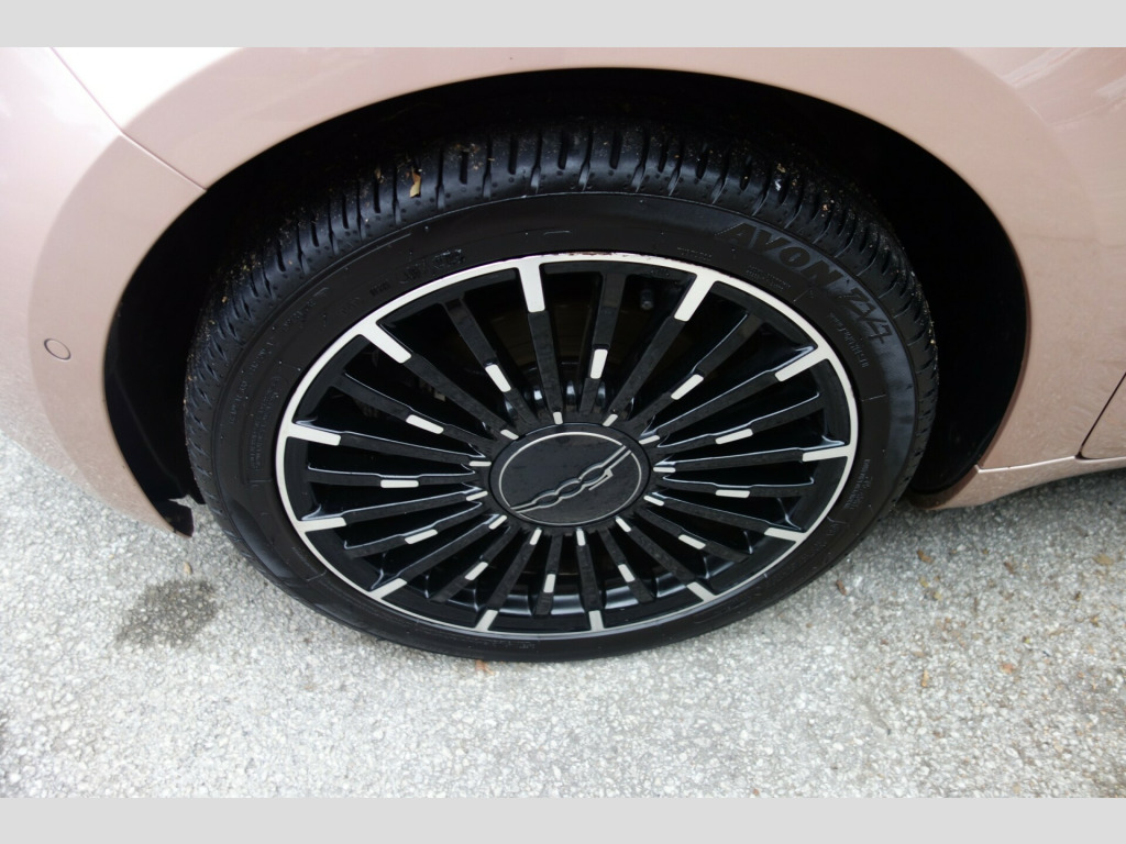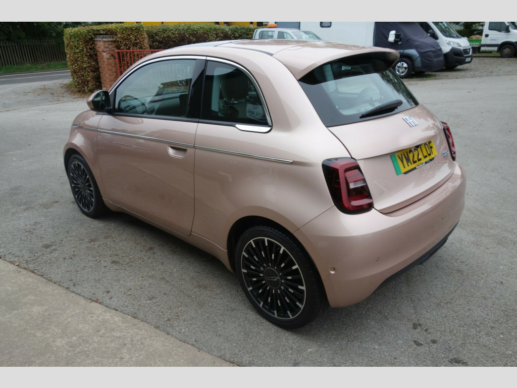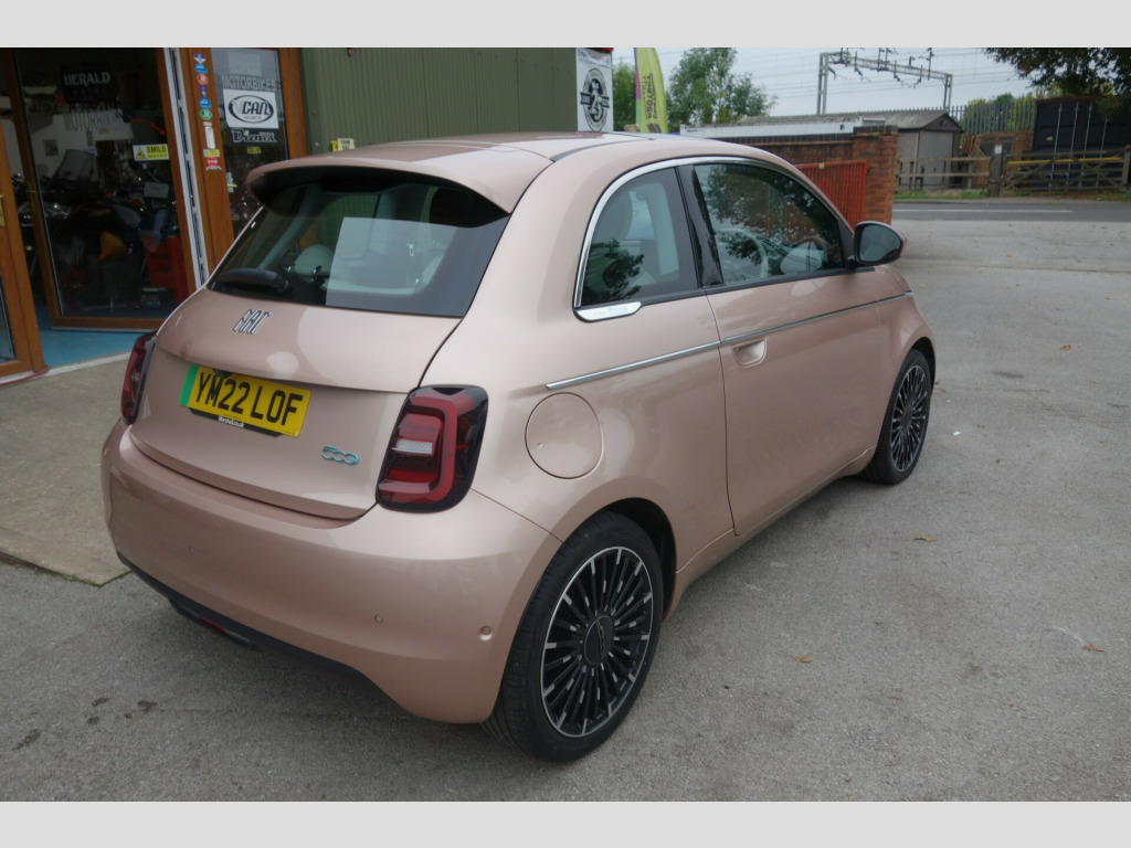 This 2022 Fiat 500E 42kWh La Prima Hatchback 3dr Electric Auto (118 ps) is a stylish and environmentally-friendly vehicle with only 29205 miles on the clock. As an electric hatchback, it is ideal for city driving and is ULEZ compliant, making it a great choice for urban dwellers. The MOT is valid until 15/06/2026, providing peace of mind for the next few years. With 4 seats and 3 doors, it is practical and easy to maneuver in traffic. The exterior features a sleek Rose Gold finish, while the interior boasts eco-leather in Beige and Grey, as well as a braided dashboard for a touch of luxury. The 10.25-inch infotainment touchscreen includes navigation, and there's also a 12V socket in the front and DAB radio for convenience and entertainment on the go. Overall, this Fiat 500E offers a blend of eco-friendliness, style, and practicality, making it a great choice for modern drivers. .25in infotainment touchscreen with navigation, 12v socket - front, dab radio, e-call - sos, premium audio system - jbl and harman, wireless carplay and android auto, wireless mobile phone charger, 17in alloy wheels, chrome exterior accents, electric windows - driver and passenger one touch up-down, electrically adjustable and heated body coloured door mirrors, fix and go puncture repair kit, panoramic sunroof, 6-way manually adjustable front seats, 7in tft digital instrument cluster, automatic air conditioning, bi-colour eco-leather steering wheel with audio control, central console with sliding door closing storage space, centre console with sliding door storage space, electrochromatic rear view mirror, floor mats with 500 logo, front armrest, keyless go, kick plate, passive entry, rain sensor, seats - 50-50 split - rear, abs - anti-lock braking system, airbags - driver, airbags - passenger, autonomous emergency braking - aeb, electronic parking brake, intelligent speed assist and traffic sign recognition, lane keeping assist - lka, wearable key, attention assist, charging cable - mode 3, cruise control, ev mode selector, power steering, rear parking sensors, traffic sign information, automatic high-low beam, dusk sensor, led daytime running lights, led headlights, led rear lights