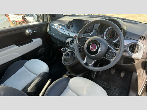 Fiat 500 1.0 Mild Hybrid Dolcevita [Part Leather] 2dr 8 buttons on steering wheel, Apple car play/Android Auto, Cruise control, Dualdrive PAS, E-call, External temperature gauge, Rear parking sensor, Speed limiter, Stop/start system, Trip computer, 6 speakers, 7" HD Touchscreen Radio, Bluetooth, USB and DAB, 3rd brake light, Auto headlights, Body colour bumpers, Chrome plated exterior door handles, Dusk and rain sensors, Electric front windows, Electrically adjustable door mirrors, Fixed sunroof, Front fog lights, Halogen headlamps, Heat insulated glass, Hybrid logo on rear, LED daytime running lights, Rear boot, 1 passenger grab handle, 2 seat bench in second row, 50/50 split folding rear seats with height adjustable rear headrests, Air conditioning, Auxilliary 12V power socket, Chrome kit, Front headrests, Height adjustable drivers seat, Height adjustable steering wheel, Isofix child seat preparation, Single front passenger seat, Techno leather steering wheel with audio controls, 7 airbags - Driver, passenger, side, window and drivers knee airbags, ABS/EBD, ESC + ASR/MSR + HBA + Hill holder, Passenger airbag deactivation system, Traction control, Tyre pressure monitoring system, Automatic door locking, Immobiliser, Locking fuel filler cap, Remote central locking, Body paint dashboard