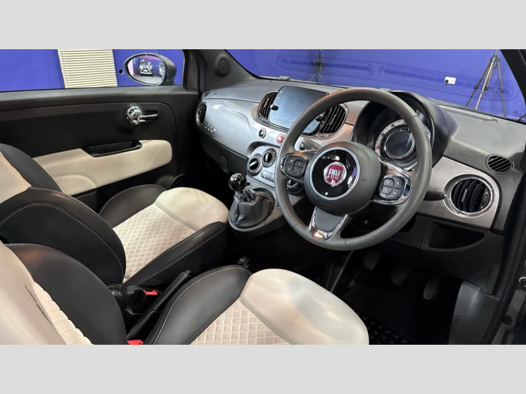 Fiat 500 1.0 Mild Hybrid Dolcevita [Part Leather] 3dr Apple car play/Android Auto, Cruise control, External temperature gauge, Power assist steering, Rear parking sensor, Speed limiter, Stop/start system, Trip computer, 4 speakers, Rear speakers, Body colour bumpers, Chrome plated exterior door handles, Dolcevita badge on fender, Dusk and rain sensors, Electric front windows, Front fog lights, Heat insulated glass, Heated rear windows with wash wipe, LED daytime running lights, 1 passenger grab handle, 50/50 split folding rear seats with height adjustable rear headrests, Auxilliary 12V power socket, Chrome kit, Front headrests, Height adjustable drivers seat, Height adjustable steering wheel, Isofix child seat preparation, Techno leather steering wheel with audio controls, 7 airbags - Driver, passenger, side, window and drivers knee airbags, ABS/EBD, ESC + ASR/MSR + HBA + Hill holder, Passenger airbag deactivation system, Traction control, Tyre pressure monitoring system, Automatic door locking, Immobiliser, Locking fuel filler cap, Remote central locking