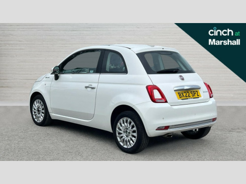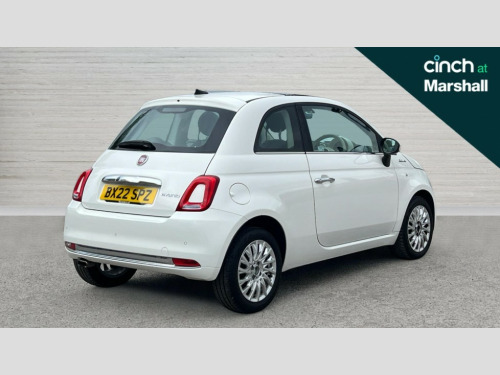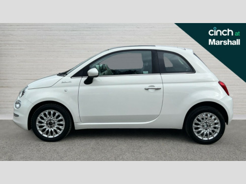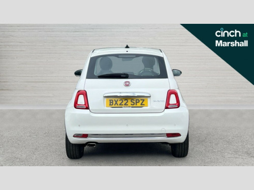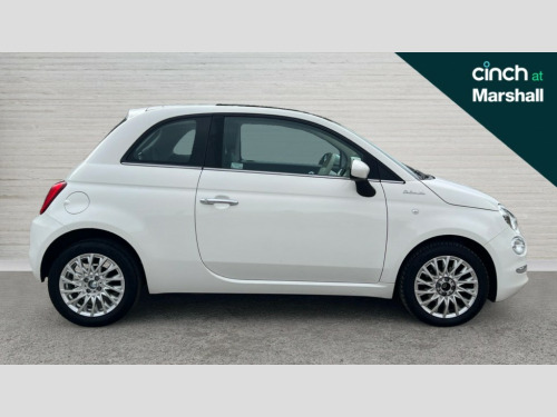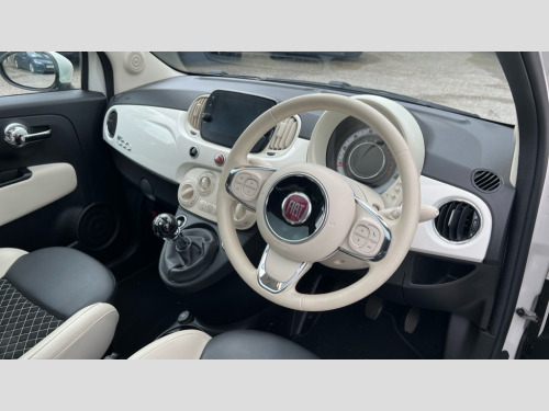 Fiat 500 1.0 Mild Hybrid Dolcevita [Part Leather] 3dr Apple car play/Android Auto, Cruise control, E-call, External temperature gauge, Power assist steering, Rear parking sensor, Speed limiter, Stop/start system, Trip computer, 4 speakers, 7" HD Touchscreen Radio, Bluetooth, USB and DAB, Rear speakers, 3rd brake light, Auto headlights, Body colour bumpers, Body coloured electrically adjustable door mirrors, Chrome plated exterior door handles, Dolcevita badge on fender, Dusk and rain sensors, Electric front windows, Fixed glass sunroof with sunblind, Front fog lights, Halogen headlamps, Heat insulated glass, Heated rear windows with wash wipe, LED daytime running lights, Rear side wing doors, Rear wiper, 1 passenger grab handle, 2 seat bench in second row, 50/50 split folding rear seats with height adjustable rear headrests, Air conditioning, Auxilliary 12V power socket, Chrome kit, Front headrests, Height adjustable drivers seat, Height adjustable steering wheel, Isofix child seat preparation, Single front passenger seat, Techno leather steering wheel with audio controls, 7 airbags - Driver, passenger, side, window and drivers knee airbags, ABS/EBD, ESC + ASR/MSR + HBA + Hill holder, Passenger airbag deactivation system, Traction control, Tyre pressure monitoring system, Automatic door locking, Immobiliser, Locking fuel filler cap, Remote central locking, 15" Alloy wheels