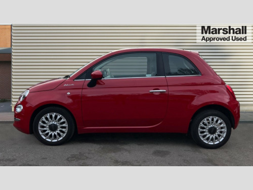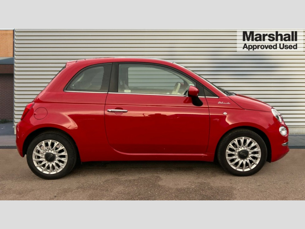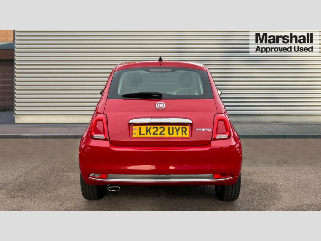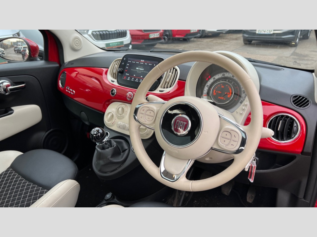 Fiat 500 1.0 Mild Hybrid Dolcevita [Part Leather] 3dr Apple car play/Android Auto, Cruise control, E-call, External temperature gauge, Power assist steering, Rear parking sensor, Speed limiter, Stop/start system, Trip computer, 4 speakers, 7" HD Touchscreen Radio, Bluetooth, USB and DAB, Rear speakers, 3rd brake light, Auto headlights, Body colour bumpers, Body coloured electrically adjustable door mirrors, Chrome plated exterior door handles, Dolcevita badge on fender, Dusk and rain sensors, Electric front windows, Fixed glass sunroof with sunblind, Front fog lights, Halogen headlamps, Heat insulated glass, Heated rear windows with wash wipe, LED daytime running lights, Rear side wing doors, Rear wiper, 1 passenger grab handle, 2 seat bench in second row, 50/50 split folding rear seats with height adjustable rear headrests, Air conditioning, Auxilliary 12V power socket, Chrome kit, Front headrests, Height adjustable drivers seat, Height adjustable steering wheel, Isofix child seat preparation, Single front passenger seat, Techno leather steering wheel with audio controls, 7 airbags - Driver, passenger, side, window and drivers knee airbags, ABS/EBD, ESC + ASR/MSR + HBA + Hill holder, Passenger airbag deactivation system, Traction control, Tyre pressure monitoring system, Automatic door locking, Immobiliser, Locking fuel filler cap, Remote central locking, 15" Alloy wheels