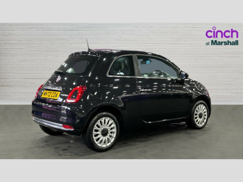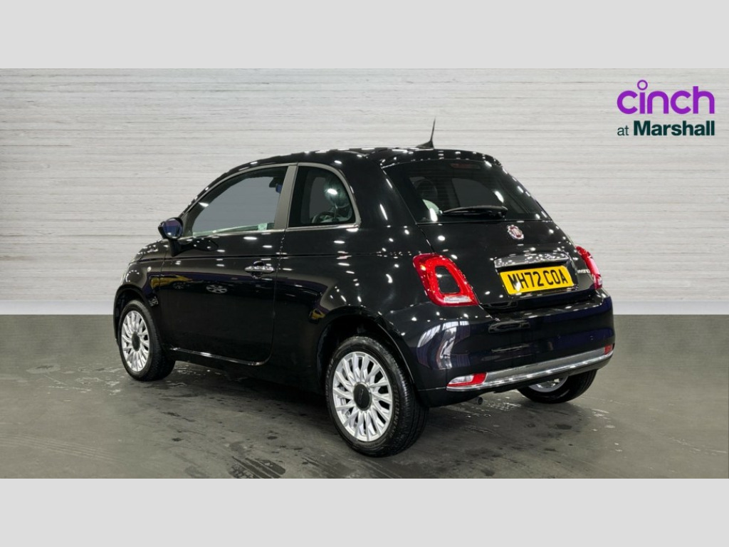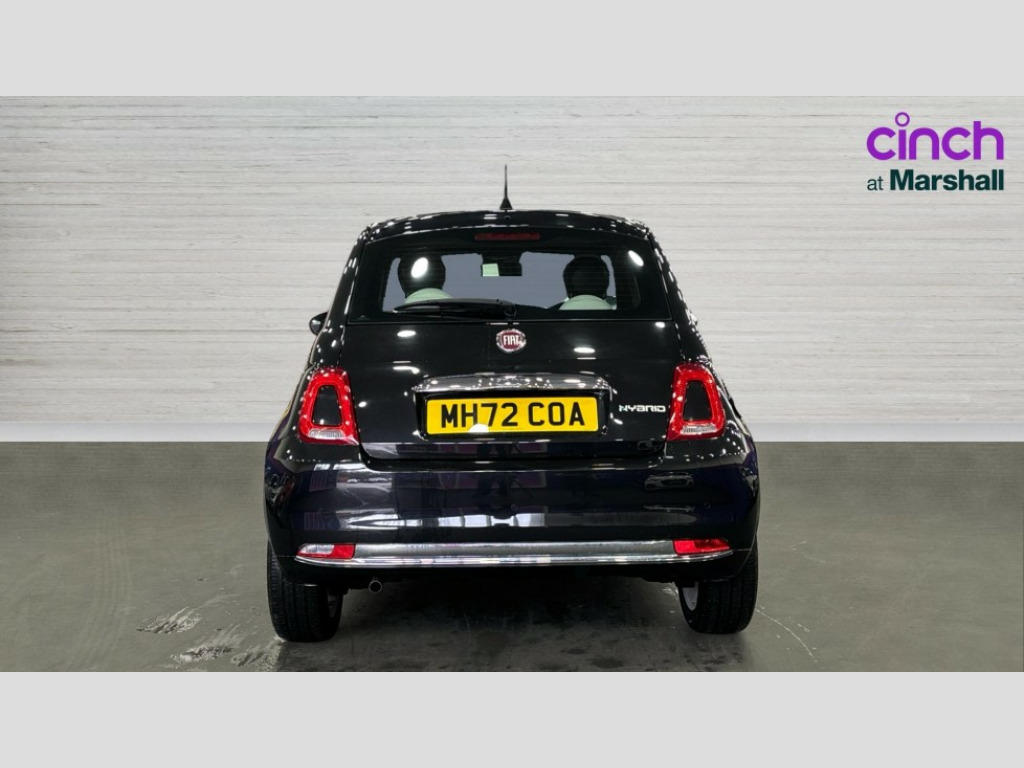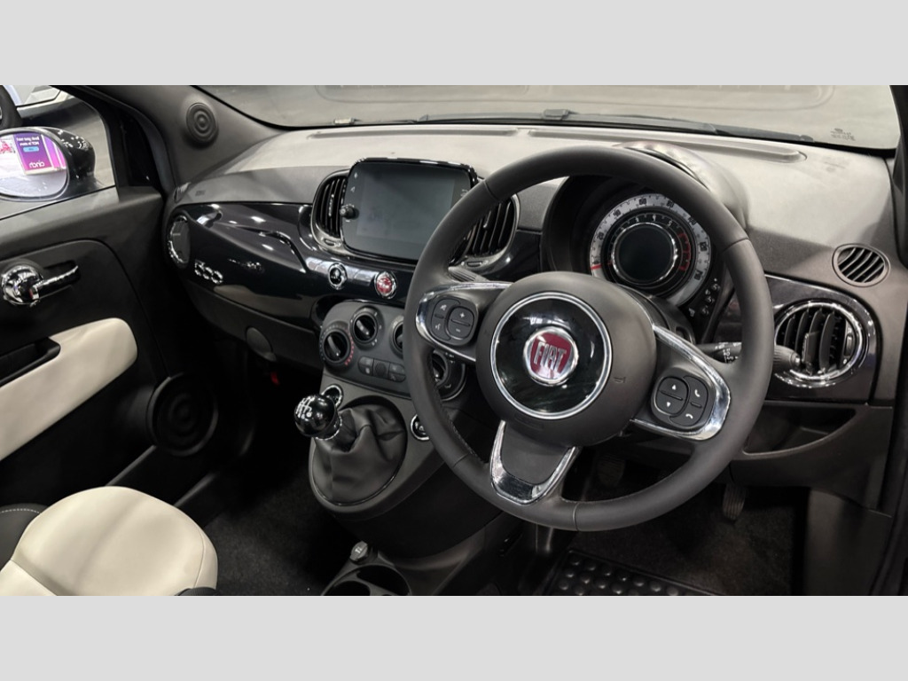 Fiat 500 1.0 Mild Hybrid Dolcevita [Part Leather] 3dr Apple car play/Android Auto, Cruise control, E-call, External temperature gauge, Power assist steering, Rear parking sensor, Speed limiter, Stop/start system, Trip computer, 4 speakers, 7" HD Touchscreen Radio, Bluetooth, USB and DAB, Rear speakers, 3rd brake light, Auto headlights, Body colour bumpers, Body coloured electrically adjustable door mirrors, Chrome plated exterior door handles, Dolcevita badge on fender, Dusk and rain sensors, Electric front windows, Fixed glass sunroof with sunblind, Front fog lights, Halogen headlamps, Heat insulated glass, Heated rear windows with wash wipe, LED daytime running lights, Rear side wing doors, Rear wiper, 1 passenger grab handle, 2 seat bench in second row, 50/50 split folding rear seats with height adjustable rear headrests, Air conditioning, Auxilliary 12V power socket, Chrome kit, Front headrests, Height adjustable drivers seat, Height adjustable steering wheel, Isofix child seat preparation, Single front passenger seat, Techno leather steering wheel with audio controls, 7 airbags - Driver, passenger, side, window and drivers knee airbags, ABS/EBD, ESC + ASR/MSR + HBA + Hill holder, Manual passenger airbag deactivation function, Traction control, Tyre pressure monitoring system, Automatic door locking, Immobiliser, Locking fuel filler cap, Remote central locking, 15" Alloy wheels