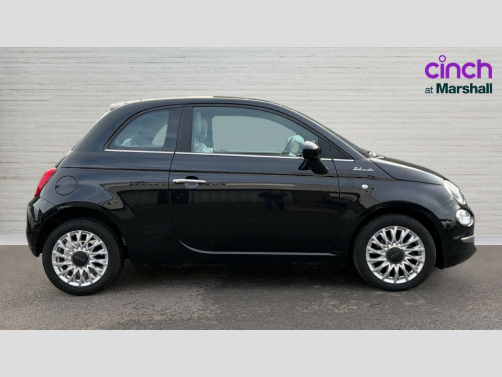 Fiat 500 1.0 Mild Hybrid Dolcevita [Part Leather] 3dr Apple car play/Android Auto, Cruise control, External temperature gauge, Power assist steering, Rear parking sensor, Speed limiter, Stop/start system, Trip computer, 4 speakers, Rear speakers, Body colour bumpers, Chrome plated exterior door handles, Dolcevita badge on fender, Dusk and rain sensors, Electric front windows, Front fog lights, Heat insulated glass, LED daytime running lights, 1 passenger grab handle, 50/50 split folding rear seats with height adjustable rear headrests, Auxilliary 12V power socket, Chrome kit, Front headrests, Height adjustable drivers seat, Height adjustable steering wheel, Isofix child seat preparation, Techno leather steering wheel with audio controls, 7 airbags - Driver, passenger, side, window and drivers knee airbags, ABS/EBD, ESC + ASR/MSR + HBA + Hill holder, Manual passenger airbag deactivation function, Traction control, Tyre pressure monitoring system, Automatic door locking, Immobiliser, Locking fuel filler cap, Remote central locking