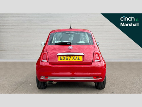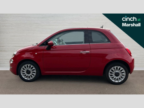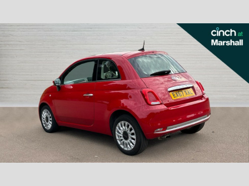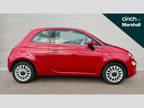 Fiat 500 1.2 Lounge 3dr Cruise control + speed limiter, Dualdrive PAS, External temperature gauge, Rear parking sensor, Stop/start system, Trip computer, Body colour bumpers, Chrome door handles, Electric adjustable heated door mirrors, Electric front windows, Front fog lights, Heat insulated glass, Heated rear windows with wash wipe, LED daytime running lights, 1 passenger grab handle, 50/50 split folding rear seats with height adjustable rear headrests, Auxilliary 12V power socket, Driver's seat memory, Front headrests, Front passenger seat memory, Height adjustable drivers seat, Height adjustable steering wheel, Isofix child seat preparation, Leather steering wheel with audio controls, Chrome pack - 500, ABS/EBD, Driver and passenger airbags, Drivers knee airbag, ESP + ASR/MSR + HBA + Hill holder, Side airbags, Tyre pressure monitoring system, Window airbags, Automatic door locking, Immobiliser, Locking fuel filler cap, Remote central locking, Grey dashboard trim