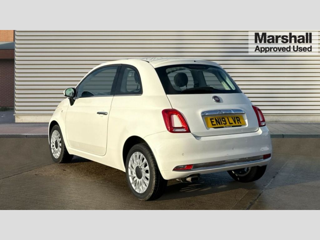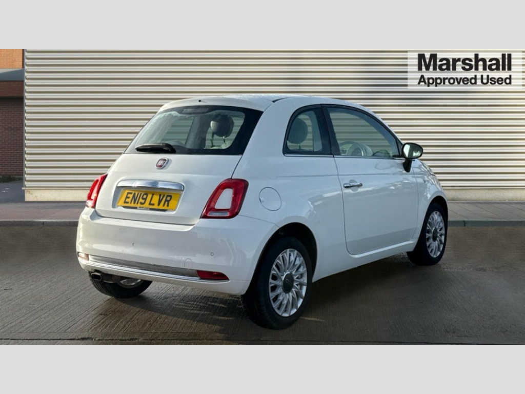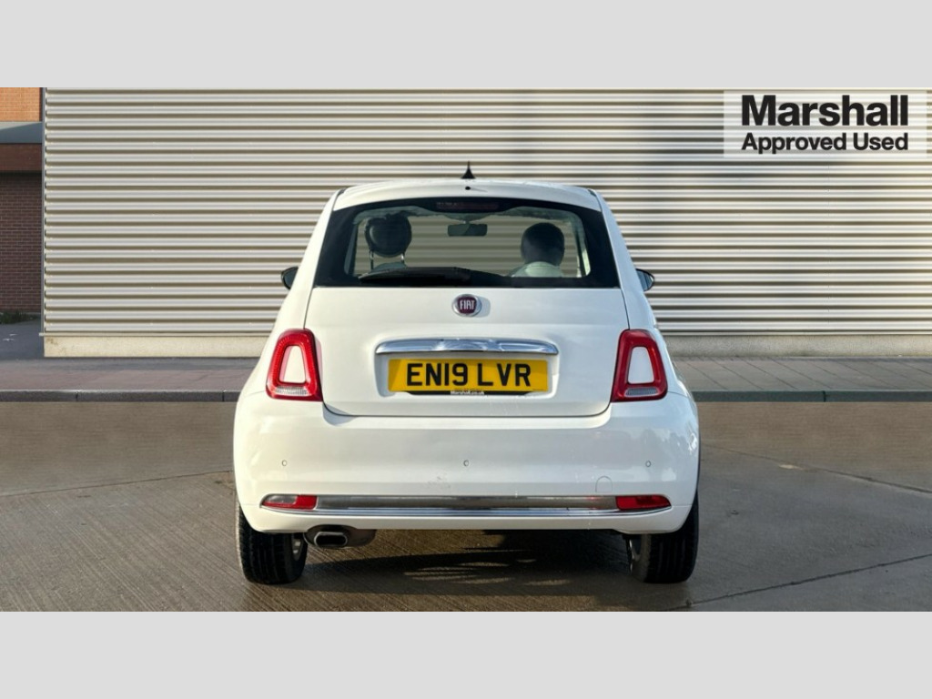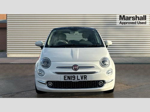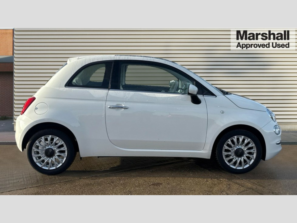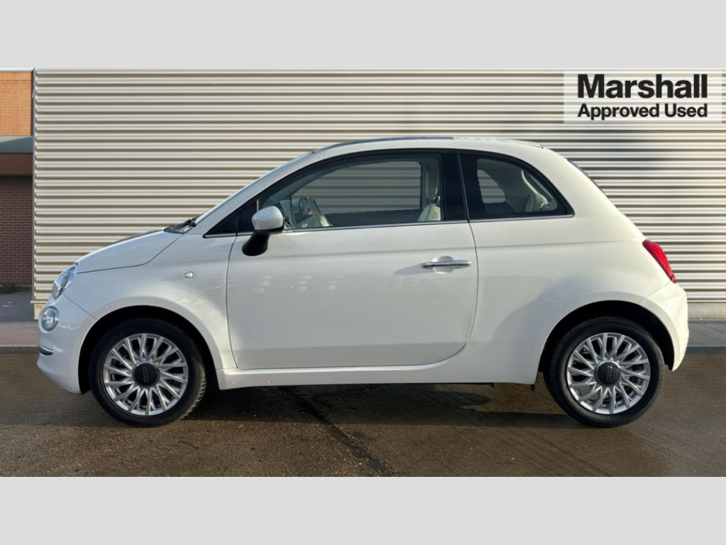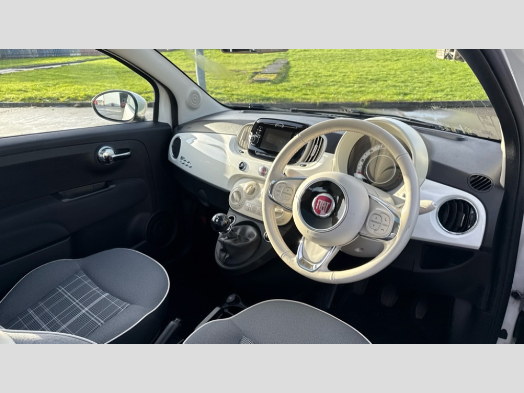 Fiat 500 1.2 Lounge 3dr Apple car play/Android Auto, Cruise control + speed limiter, Dualdrive PAS, External temperature gauge, Rear parking sensor, Stop/start system, Trip computer, 4 speakers, Rear speakers, Body colour bumpers, Chrome plated exterior door handles, Electric front windows, Front fog lights, Heat insulated glass, Heated rear windows with wash wipe, LED daytime running lights, 1 passenger grab handle, 50/50 split folding rear seats with height adjustable rear headrests, Auxilliary 12V power socket, Cloth upholstery, Driver's seat memory, Front headrests, Front passenger seat memory, Height adjustable drivers seat, Height adjustable steering wheel, Isofix child seat preparation, Techno leather steering wheel with audio controls, Chrome pack - 500, 7 airbags - Driver, passenger, side, window and drivers knee airbags, ABS/EBD, Curtain airbags, ESC + ASR/MSR + HBA + Hill holder, Traction control, Tyre pressure monitoring system, Automatic door locking, Immobiliser, Locking fuel filler cap, Remote central locking, Grey dashboard trim