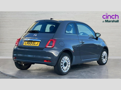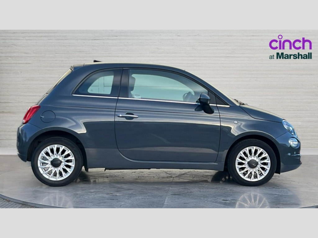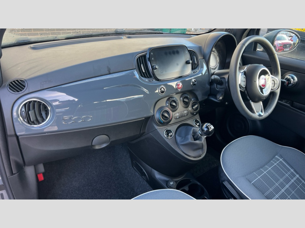 Fiat 500 1.2 Lounge 3dr Apple car play/Android Auto, Cruise control, Dualdrive PAS, External temperature gauge, Rear parking sensor, Stop/start system, Trip computer, 4 speakers, Rear speakers, Body colour bumpers, Chrome plated exterior door handles, Electric front windows, Front fog lights, Heat insulated glass, Heated rear windows with wash wipe, LED daytime running lights, 1 passenger grab handle, 50/50 split folding rear seats with height adjustable rear headrests, Auxilliary 12V power socket, Cloth upholstery, Driver's seat memory, Front headrests, Front passenger seat memory, Height adjustable drivers seat, Height adjustable steering wheel, Isofix child seat preparation, Techno leather steering wheel with audio controls, Chrome pack - 500, 7 airbags - Driver, passenger, side, window and drivers knee airbags, ABS/EBD, Curtain airbags, ESC + ASR/MSR + HBA + Hill holder, Traction control, Tyre pressure monitoring system, Automatic door locking, Immobiliser, Locking fuel filler cap, Remote central locking, Grey dashboard trim