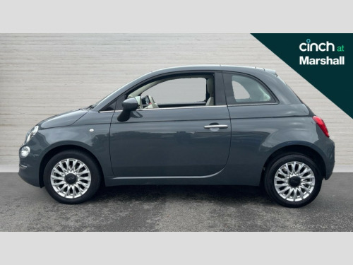Fiat 500 1.2 Lounge 3dr Dualogic Cruise control + speed limiter, Dualdrive PAS, External temperature gauge, Rear parking sensor, Stop/start system, Trip computer, Body colour bumpers, Chrome door handles, Electric front windows, Front fog lights, Heat insulated glass, Heated rear windows with wash wipe, LED daytime running lights, 1 passenger grab handle, 50/50 split folding rear seats with height adjustable rear headrests, Auxilliary 12V power socket, Front headrests, Height adjustable drivers seat, Height adjustable steering wheel, Isofix child seat preparation, Leather steering wheel with audio controls, Chrome pack - 500, ABS/EBD, Curtain airbags, Driver and passenger airbags, Drivers knee airbag, ESP + ASR/MSR + HBA + Hill holder, Side airbags, Tyre pressure monitoring system, Window airbags, Automatic door locking, Immobiliser, Locking fuel filler cap, Remote central locking, Grey dashboard trim