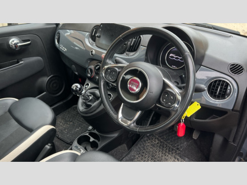 Fiat 500 1.2 Mirror 3dr Apple car play/Android Auto, Dualdrive PAS, External temperature gauge, Speed limiter, Stop/start system, Trip computer, Body colour bumpers, Chrome door handles, Chrome door mirror housings, Electric adjustable heated door mirrors, Electric front windows, Heat insulated glass, Heated rear windows with wash wipe, LED daytime running lights, 1 passenger grab handle, Air conditioning, Auxilliary 12V power socket, Cloth upholstery, Driver's seat memory, Front headrests, Front passenger seat memory, Height adjustable steering wheel, Isofix child seat preparation, Leather steering wheel with audio controls, 3x3 point rear seatbelts, ABS/EBD, Driver and passenger airbags, Drivers knee airbag, ESP + ASR/MSR + HBA + Hill holder, Side airbags, Tyre pressure monitoring system, Window airbags, Automatic door locking, Immobiliser, Locking fuel filler cap, Remote central locking, Body colour dashboard