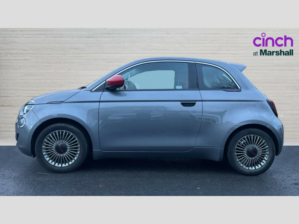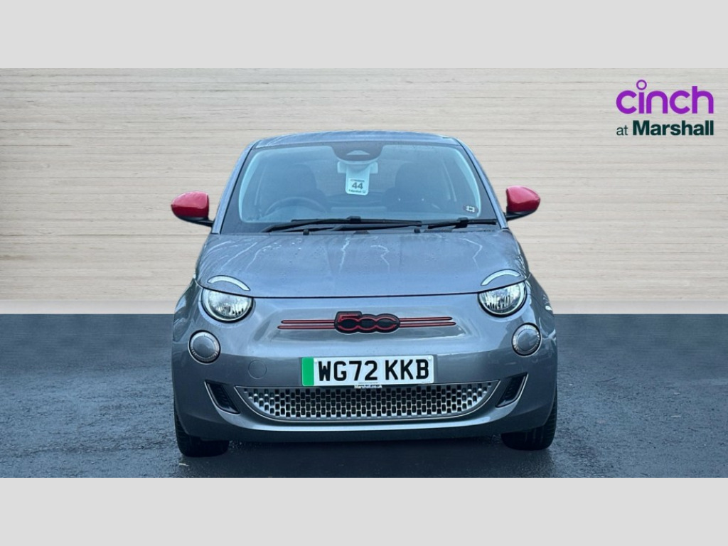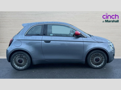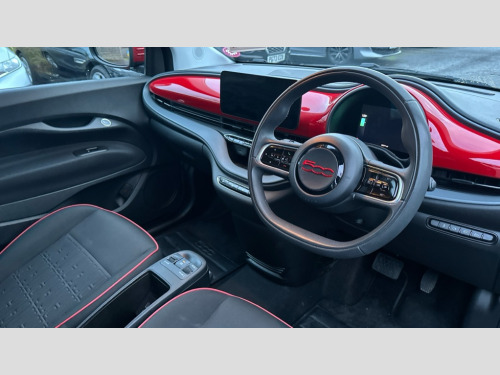 Fiat 500 87kW Red 42kWh 3dr Auto 10.25" touchscreen infotainment with navigation, 7" TFT instrument cluster, Attention assist, Bluetooth connectivity, Cruise control, E-call, EV mode selector, Intelligent speed assist, Lane keeping assistant (LKA), Power assist steering, Traffic sign recognition, Uconnect live service, Vehicle Start Button, Wireless apple car play/android Auto, 85kW fast charge, Mode 3 charging cable, 2x Front USB port, 4 speakers, DAB radio, 3rd brake light, Chromed daylight opening, Drivers one touch power window up/down, Dusk sensor, Electric adjustable door mirrors, Halogen headlamps, LED daytime running lights, LED rear lights, Rear wiper, Red logo on C-pillar, Unique exterior red finished door mirror covers, Unique exterior red finished front logo and moustache, Unique exterior red finished wheel centre hubcaps, Welcome lighting, 2 seat bench in second row, 4 way manually adjustable drivers seat, Automatic air conditioning, Auxilliary 12V power socket, Centre console storage, Eco Leather steering wheel, Fabric upholstery with red dashboard, Front headrests, Height adjustable steering wheel, Rear head restraints, RED kit inclues cabin air filter, antibacterial treatment on surfaces and sanitiser dispenser, Red logo on steering wheel, Single front passenger seat, Specific floor mats with red logo, Steering wheel with audio controls, 7 airbags - Driver, passenger, side, window and drivers knee airbags, ABS/EBD, Autonomous emergency braking, Brake assist function, Curtain airbags, Electronic parking brake, ESC + ASR/MSR + HBA + Hill holder, Front passenger airbag deactivation, Tyre pressure sensor, Automatic door locking, Keyless Go, Remote central locking, 16" alloy wheels, Fix and go puncture repair kit