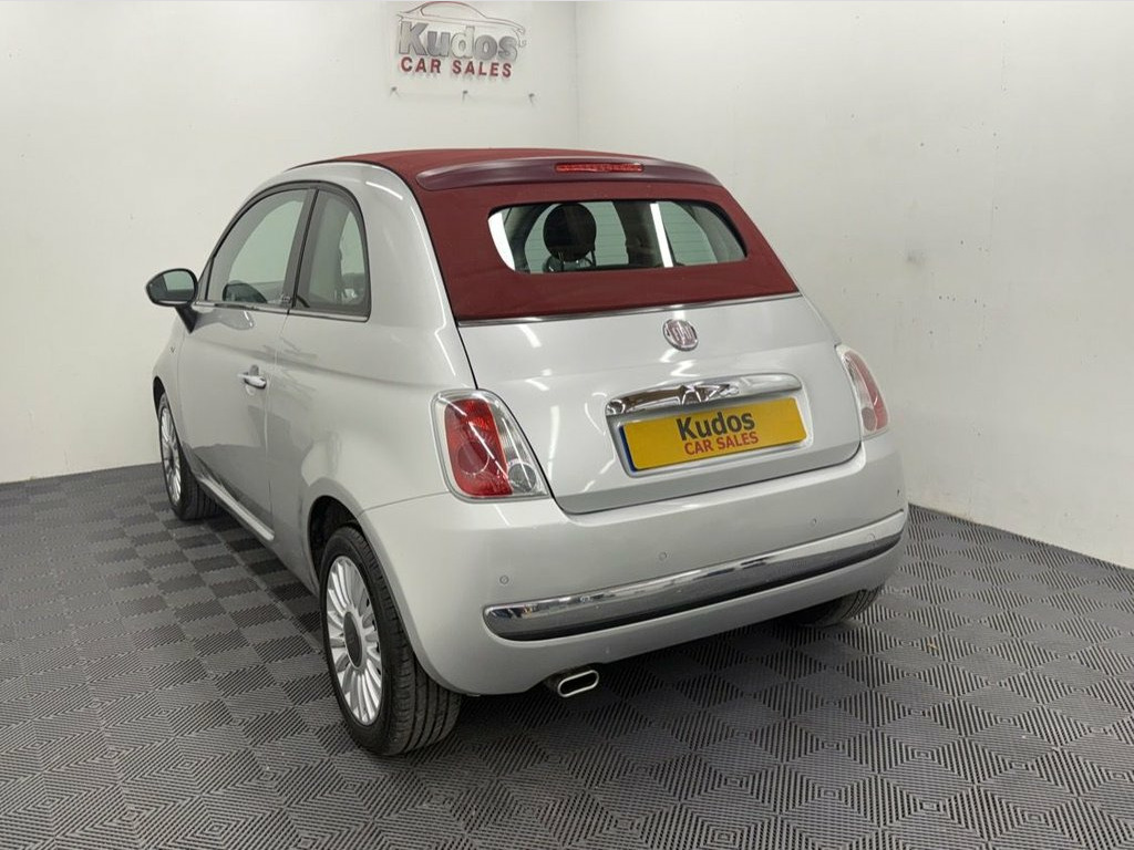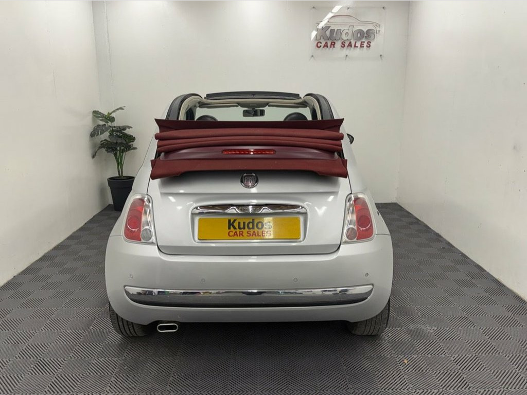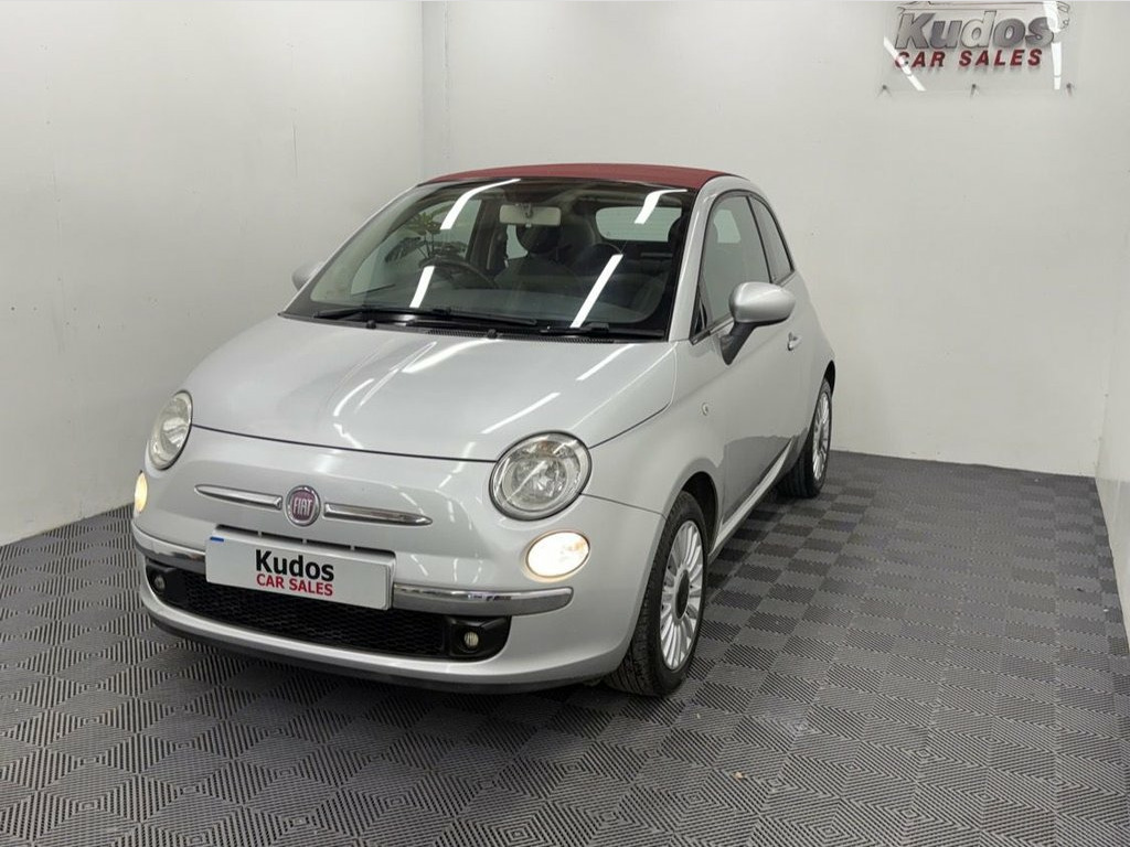 2010 FIAT 500C 0.9 TwinAir LOUNGE 2dr CONVERTIBLE - STUNNING CAR AND IN FANTASTIC CONDITION. FINISHED IN GLAM SILVER METALLIC AND RED ROOF. FINANCE AVAILABLE FROM ONLY £70 per mth. 6 MONTHS WARRANTY INCLUDED. EACH VEHICLE COMES WITH A FREE HPI CLEAR REPORT AND 1 YEAR BREAKDOWN COVER. 88000 MILES AND VERY WELL LOOKED AFTER. ***£20 ROAD TAX***MOT UNTIL 02/07/2026 AND NO ADVISORIES . SERVICE HISTORY AND JUST FULLY SERVICED. AMAZING CONDITION INSIDE AND OUT. HUGE SPEC: BLACK AND GREY HALF LEATHER INTERIOR, REAR PARKING SENSORS, FULLY ELECTRIC CONVERTIBLE ROOF, CLIMATE CONTROL, AIRCON, ECO MODE, REMOTE CENTRAL LOCKING, FOG LIGHTS, ELECTRIC WINDOWS/MIRRORS, 15'' ALLOY WHEELS. PREVIOUS NON SMOKER. FINANCE PACKAGES - With a number of lenders on board i am able to offer Finance to suit individual circumstances, including Sub Prime. All CARS ARE HPI CHECKED AND CLEAR. WARRANTY - At KUDOS CAR SALES every vehicle comes with a FREE 6 MONTH warranty . Any repairs under warranty can be carried out at your local garage - Extended warranty available on request at extra cost. INCLUDES LOCKING WHEEL NUT. ***ALL PART EXCHANGE'S CONSIDERED*** 12V Socket, 15in Alloy Wheels, 15in Alloy Wheels - Sport, ABS - Anti-Lock Braking System, Airbags - Driver, Airbags - Front Side, Airbags - Passenger, ASR - Anti-Slip Regulation, Black ambience, Black soft- top, Blue&Me - Hands Free System with USB, Body colour door mirrors, Body Coloured Door Mirrors, Chrome Kit, Climate Control - Automatic Dual Zone, Cloth - Ivory/Black/Black with Red Soft , Door Mirrors - Electrically Adjustable, Drivers Knee Airbag, EBD - Electronic Brakeforce Distribution, Electric Front Windows, Electrically Adjustable Heated Door Mirr, ESP - Electronic Stability Programme, Fog Lights, Head Restraints - Rear, Hill Holder, ISOFIX Child Seat Attachments, Ivory ambien