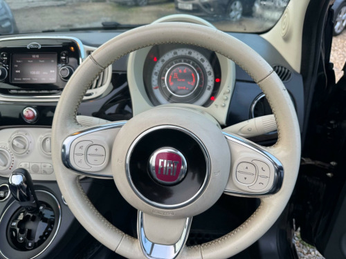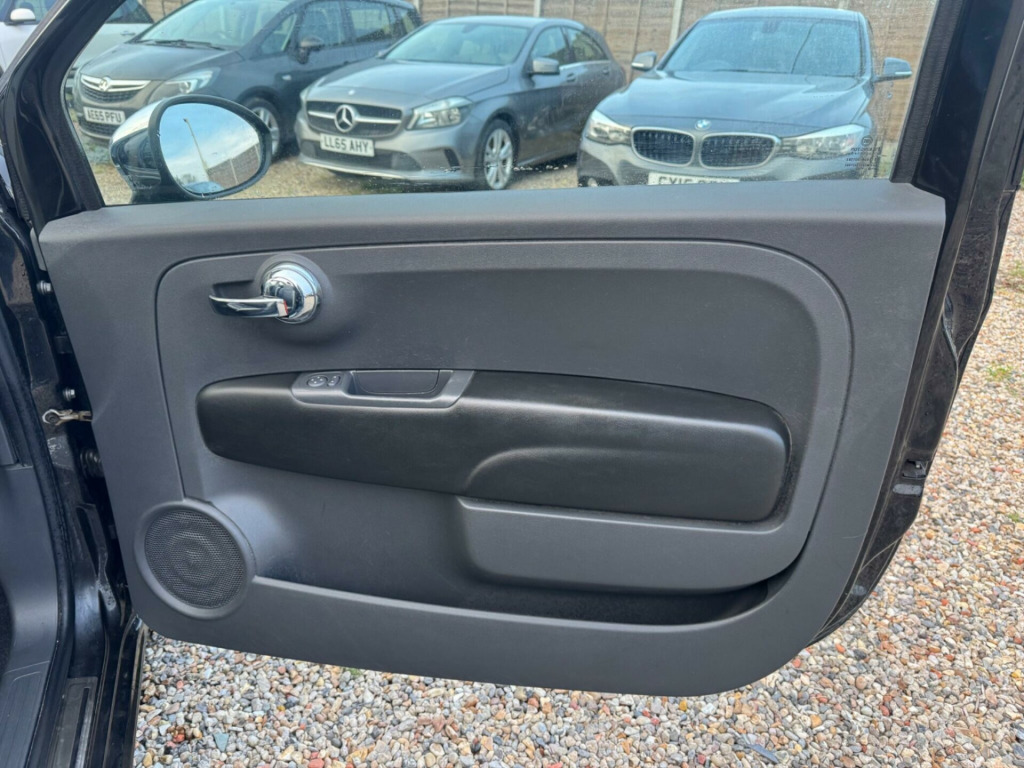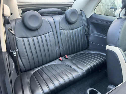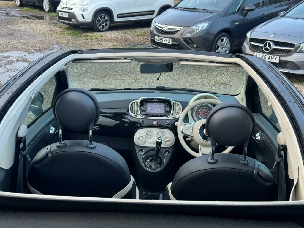 This 2015 Fiat 500C Lounge is a fantastic example with only two previous owners, offering a unique blend of style and practicality. Powered by an efficient 0.9L petrol engine, this Euro 6 compliant model boasts impressive fuel economy of up to 74 mpg, making it an economical choice for everyday driving. The Lounge trim enhances the exterior with stylish chrome trim on the bonnet and chrome finished door mirror covers, complemented by attractive 16 inch alloy wheels. Inside, you'll find the convenience of front seats with memory function, ensuring your preferred driving position is always easily recalled.The 500C Lounge also features a user friendly 5 inch touchscreen radio system, complete with AUX, USB, DAB, and Bluetooth connectivity for all your entertainment and communication needs. Its low CO2 emissions further highlight its environmental credentials, setting it apart from many other vehicles in its class. This Fiat 500C Lounge offers a charming and cost effective motoring experience, combining desirable features with excellent running costs. in alloy wheels - 5zz, space saver spare wheel, chrome finished door mirror covers, chrome trim on bonnet, leather - black-ivory with ivory ambience and black roof, 12v socket - front, 15in alloy wheels, 50-50 split folding rear seat with height adjustable head restraints, 5in touchscreen radio with aux - usb - dab - bluetooth, 7 airbags, abs with ebd, air conditioning, automatic door locking, body coloured bumpers, chrome kit, chrome plated exterior door handles, dualdrive power steering, esc - electronic stability control, electric front windows, electrically adjustable painted door mirrors, fix and go puncture repair kit, fog lights, front seats with memory function, fuel cap with tap, gsi - gear shift indicator, hazard light automatic activation during emergency braking, heat reflective windows, heated rear window, height adjustable drivers seat, height adjustable front head restraints, isofix attachment points for child safety seat on rear seat, instrument panel with rev counter, led daytime running lights, rear parking sensors, rear window wiper-washer, remote central locking, seats-back pockets, steering wheel - height adjustment, steering wheel - leather with audio controls, tpms - tyre pressure monitoring system, trip computer