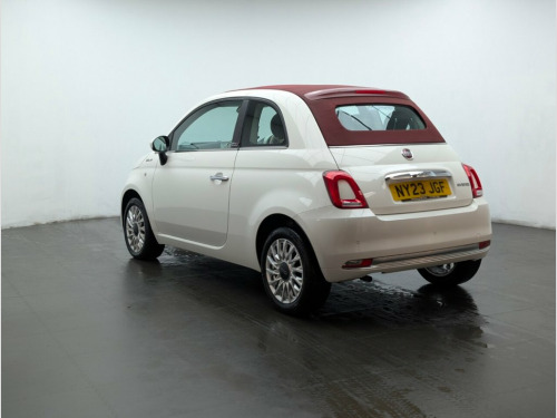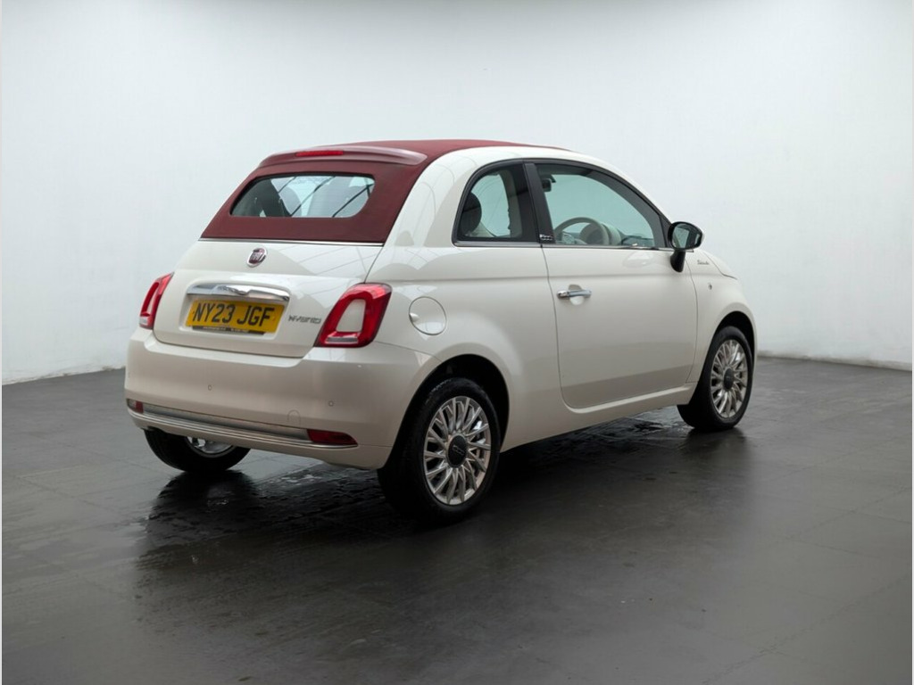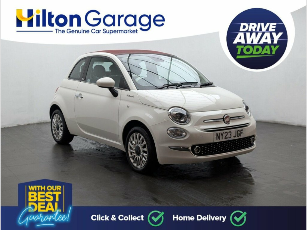 15" alloys, Bluetooth, Apple CarPlay, Cruise control and Rear parking sensors. Last service done at 6239 miles on 13/06/2024. Experience open-top driving with true Italian flair in this Fiat 500C 1.0 MHEV Dolcevita, a beautifully styled 2-door convertible that perfectly blends charm, modern efficiency, and everyday practicality. Powered by a 70bhp 1.0-litre Mild Hybrid petrol engine with start/stop technology and paired with a smooth manual gearbox, it delivers excellent fuel economy, refined performance, and low running costs—ideal for city driving and weekend cruising. 15in Alloy Wheels, 50-50 Split Folding Rear Seat with Heigh, 7 Airbags, 7in HD Touchscreen Radio with Bluetooth , ABS with EBD, Air Conditioning, Apple CarPlay - Android Auto Connectivit, Automatic Door Locking, Black Fabric Roof, Body Coloured Bumpers, Body Coloured Dashboard, Bossa Nova White, Chrome Kit, Chrome Plated Exterior Door Handles, Cruise Control, Dolcevita Badge, Electric Front Windows, Electrically Adjustable and Heated Body , ESC - Electronic Stability Control, Fix and Go Puncture Repair Kit, Fog Lights, Height Adjustable Drivers Seat, LED Daytime Running Lights, Rack and Pinion with Electric Power Stee, Rain and Dusk Sensors, Rear Parking Sensors, Remote Central Locking, Spee