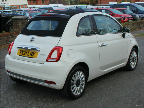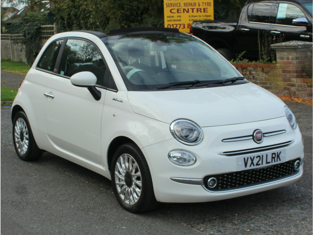 Introducing the 2021 Fiat 500c 1.0 MHEV Dolcevita Convertible, a stylish and environmentally friendly option with just 14000 miles on the clock. This sleek 2-door vehicle boasts a petrol hybrid engine that not only delivers a powerful 70 bhp but also ensures ULEZ compliance. Its convertible design offers a thrilling driving experience, with the added bonus of a black fabric roof for those sunny summer days. With 4 comfortable seats and a chic Bossa Nova White exterior, this Fiat 500c is as practical as it is eye-catching. The chrome kit and 15in alloy wheels add a touch of elegance, while the body-colored bumpers complete the sophisticated look. Whether you're zipping around the city or out for a countryside cruise, the Fiat 500c is a versatile and eco-friendly choice for any driver., OPEN 7 DAYS A WEEK - A SELECTION OF UP TO 200 CARS AND VANS AVAILABLE. Click on dealer 'VISIT WEBSITE' link for many more large photographs of this car. We are a West Sussex Trading Standards Approved 'Buy with Confidence Dealership'. in alloy wheels, black fabric roof, body coloured bumpers, chrome kit, chrome plated exterior door handles, dolcevita badge, electric front windows, electrically adjustable and heated body coloured door mirrors, fix and go puncture repair kit, 50-50 split folding rear seat with height adjustable head restraints, air conditioning, body coloured dashboard, height adjustable drivers seat, rain and dusk sensors, steering wheel - height adjustment, technoleather steering wheel with audio controls, 7 airbags, abs with ebd, automatic door locking, esc - electronic stability control, remote central locking, 7in hd touchscreen radio with bluetooth - usb and dab, apple carplay - android auto connectivity, cruise control, rack and pinion with electric power steering, rear parking sensors, speed limiter, tpms - tyre pressure monitoring system, fog lights, led daytime running lights