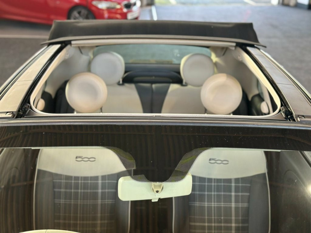 2016 16 FIAT 500C 1.2 ECO LOUNGE CONVERTIBLE 69 BHP - ULEZ COMPLIANT. A LOVELY EXAMPLE ON OFFER WITH A 4 STAMP SERVICE HISTORY AND 2 KEYS. ON BOARD FEATURES INCLUDE ALLOY WHEELS, 2 STAGE FOLDING FABRIC ROOF, REMOTE CENTRAL LOCKING, BLUETOOTH, DAB RADIO, CRUISE CONTROL, REVERSE PARKING SENSORS, TINTED GLASS, 2 TONE INTERIOR, POWER WINDOWS & MIRRORS AND COLOUR CODED BODY . SUPPLIED WITH 12 MONTHS MOT INCLUDING PRE DELIVERY SERVICE AND INSPECTION. WE CAN OFFER BESPOKE FINANCE PACKAGES AND PART EXCHANGE FACILITIES. FOR MORE INFORMATION PLEASE CALL ELMBANK MOTOR COMPANY AYR ON 01292 292991. 12V Socket - Front, 15in Alloy Wheels, 50-50 Split Folding Rear Seat with Heigh, 5in Touchscreen Radio with AUX - USB - D, 7 Airbags, ABS with EBD, Air Conditioning, Automatic Door Locking, Body Coloured Bumpers, Chrome Kit, Chrome Plated Exterior Door Handles, Dualdrive Power Steering, ESC - Electronic Stability Control, Electric Front Windows, Electrically Adjustable Painted Door Mir, Fix and Go Puncture Repair Kit, Fog Lights, Front Seats with Memory Function, Fuel Cap with Tap, GSI - Gear Shift Indicator, Hazard Light Automatic Activation During, Heat Reflective Windows, Heated Rear Window, Height Adjustable Drivers Seat, Height Adjustable Front Head Restraints, ISOFIX Attachment Points