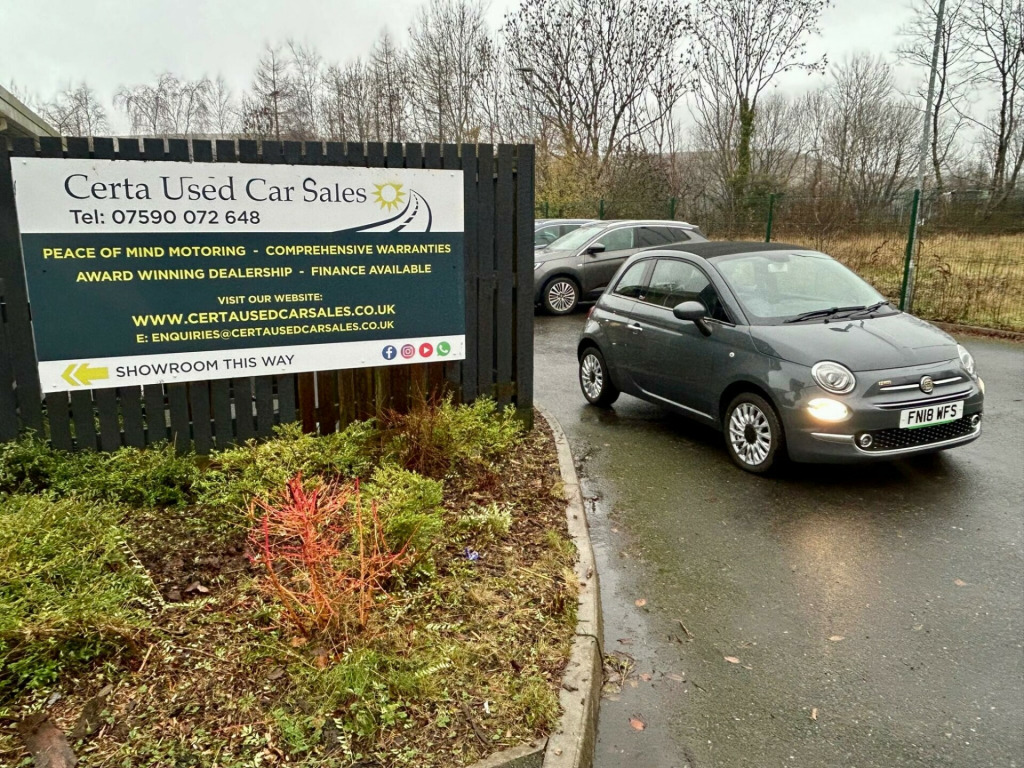 Viewings by appointment . + . Award winning, 5* Rated dealership . + . Nationwide delivery available . + . See our walk around video. Discover this charming 2018 Fiat 500C Lounge, a stylish and practical city car that's ready for its next adventure. This particular model boasts a Euro 6 compliant 1.2 litre petrol engine, offering an impressive fuel economy of up to 66 miles per gallon. Inside, you'll find a comfortable cabin featuring front seats with a memory function, making it easy to find your perfect driving position every time. For convenience, it includes rear parking sensors to assist you when manoeuvring, and a 5 inch touchscreen radio with AUX, USB, DAB, and Bluetooth connectivity, keeping you entertained and connected on the go. Air conditioning ensures a pleasant environment whatever the weather.This Fiat 500C Lounge stands out with its exceptionally low CO2 emissions and its placement in a low insurance group, indicating that running costs are kept to a minimum compared to many other vehicles. These highlights, combined with its excellent fuel efficiency, make this a sensible and economical choice for everyday driving.All of our strict PDI processes have been completed, signed off along with certificates and it's also received a fresh service by us so it's ready to go . + . Please view our website to see what we offer as a dealership along with details of our processes to ensure peace of mind motoring for all of our customers . + ., oth - black-light grey-ivory with black ambience and black roof, rain and dusk sensors, 15in alloy wheels, 50-50 split folding rear seat with height adjustable head restraints, 5in touchscreen radio with aux - usb - dab - bluetooth, 7 airbags, abs with ebd, air conditioning, automatic door locking, body coloured bumpers, chrome kit, chrome plated exterior door handles, cruise control, driver and passenger airbag with dual stage system, dualdrive power steering, esc - electronic stability control, electric front windows, electrically adjustable painted door mirrors, fix and go puncture repair kit, fog lights, front seats with memory function, gsi - gear shift indicator, hazard light automatic activation during emergency braking, heat reflective windows, heated rear window, height adjustable drivers seat, height adjustable front head restraints, isofix attachment points for child safety seat on rear seat, instrument panel with rev counter, led daytime running lights, rear parking sensors, remote central locking, seats-back pockets, speed limiter, steering wheel - height adjustment, steering wheel - leather with audio controls, tpms - tyre pressure monitoring system, trip computer
