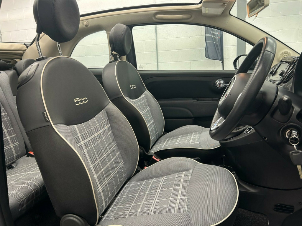 Viewings by appointment . + . Award winning, 5* Rated dealership . + . Nationwide delivery available . + . See our walk around video. Discover this charming 2018 Fiat 500C Lounge, a stylish and practical city car that's ready for its next adventure. This particular model boasts a Euro 6 compliant 1.2 litre petrol engine, offering an impressive fuel economy of up to 66 miles per gallon. Inside, you'll find a comfortable cabin featuring front seats with a memory function, making it easy to find your perfect driving position every time. For convenience, it includes rear parking sensors to assist you when manoeuvring, and a 5 inch touchscreen radio with AUX, USB, DAB, and Bluetooth connectivity, keeping you entertained and connected on the go. Air conditioning ensures a pleasant environment whatever the weather.This Fiat 500C Lounge stands out with its exceptionally low CO2 emissions and its placement in a low insurance group, indicating that running costs are kept to a minimum compared to many other vehicles. These highlights, combined with its excellent fuel efficiency, make this a sensible and economical choice for everyday driving.All of our strict PDI processes have been completed, signed off along with certificates and it's also received a fresh service by us so it's ready to go . + . Please view our website to see what we offer as a dealership along with details of our processes to ensure peace of mind motoring for all of our customers . + ., in alloy wheels, 50-50 split folding rear seat with height adjustable head restraints, 5in touchscreen radio with aux - usb - dab - bluetooth, 7 airbags, abs with ebd, air conditioning, automatic door locking, body coloured bumpers, chrome kit, chrome plated exterior door handles, cruise control, driver and passenger airbag with dual stage system, dualdrive power steering, esc - electronic stability control, electric front windows, electrically adjustable painted door mirrors, fix and go puncture repair kit, fog lights, front seats with memory function, gsi - gear shift indicator, hazard light automatic activation during emergency braking, heat reflective windows, heated rear window, height adjustable drivers seat, height adjustable front head restraints, isofix attachment points for child safety seat on rear seat, instrument panel with rev counter, led daytime running lights, rear parking sensors, remote central locking, seats-back pockets, speed limiter, steering wheel - height adjustment, steering wheel - leather with audio controls, tpms - tyre pressure monitoring system, trip computer, cloth - black-light grey-ivory with black ambience and black roof, rain and dusk sensors