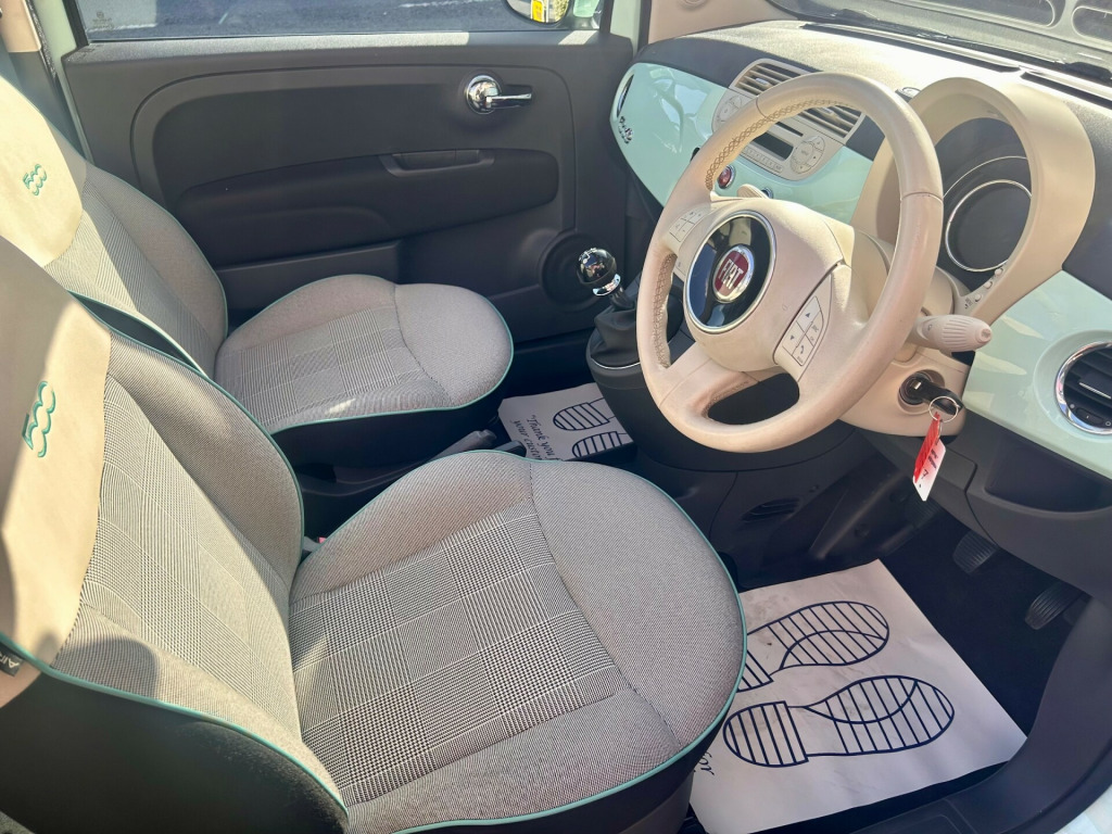 A SUPER LOVELY EXAMPLE OF THIS MUCH SOUGHT AFTER 500 C FINISHED IN THE RIGHT COLOUR!SERVICE HISTORY, NEW MOT AND WARRANTY INCLUDED FULL DELAER FACILITIES. PX WELCOME.  v socket - front, blue&me - hands free system with usb port, radio-cd and mp3 player, usb port, 16in alloy wheels - 74a, body coloured bumpers, body coloured side rubbing strips with 500 logo, bumpers - chrome inserts, chrome exhaust tailpipe, chrome kit, chrome window contours, door handles - chrome, electric front windows, electrically adjustable heated door mirrors, fix and go puncture repair kit, kickplates - chrome, locking wheel nuts, space saver spare wheel, thermal windows, abs - anti-lock braking system, asr - anti-slip regulation, airbags - driver, airbags - front side, airbags - passenger, bas - brake assistance system, drivers knee airbag, ebd - electronic brakeforce distribution, esp - electronic stability programme, hill holder, msr - motor slip regulation, remote central locking, steering wheel - black, window airbags, climate control - automatic monozone, door handles interior - chrome, grab handle, height adjustable drivers seat, seats - passengers memory function, seats-back pockets, split folding 50:50 rear seat, steering wheel - height adjustment, steering wheel - leather with audio controls, steering wheel audio controls, storage under passenger seat, daytime running lights, fog lights, dualdrive power steering, exterior temperature sensor, gsi - gear shift indicator, rear parking sensors, tyre pressure monitor system, voice recognition