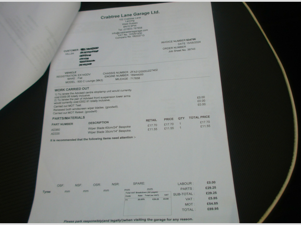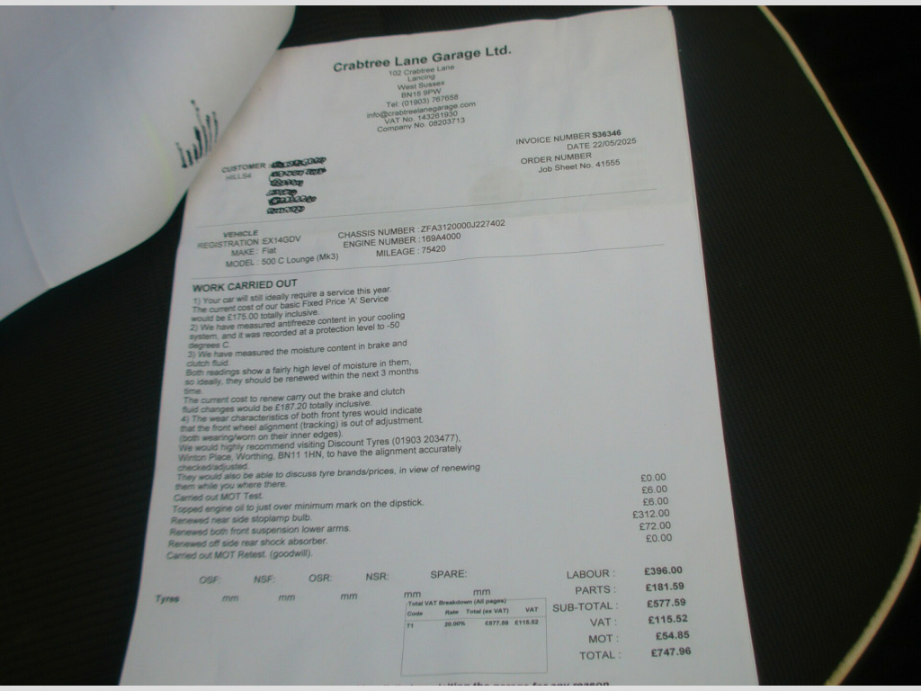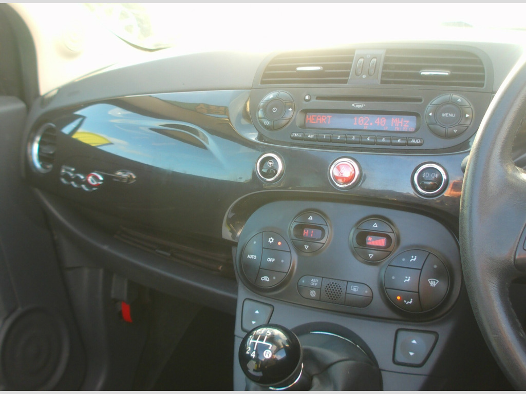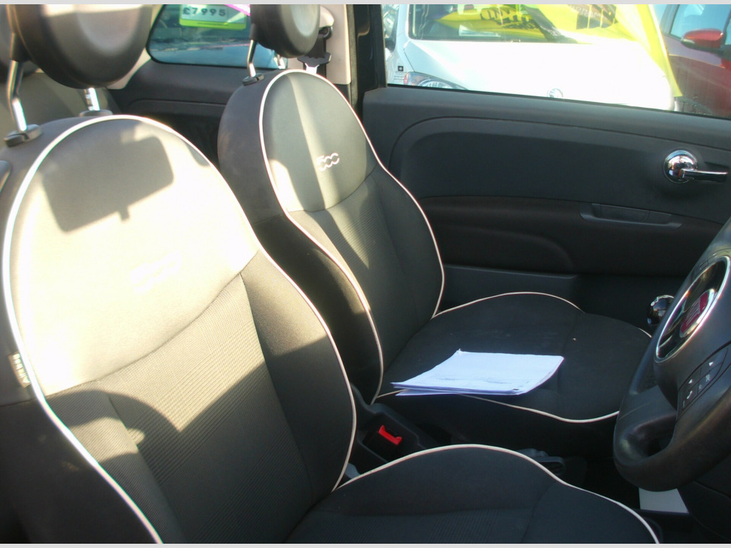 £35 A YEAR ROAD TAX ON THIS FIAT 500 LOUNGE 1.2 CONVERTIBLE 2 DOOR, BLACK, 77,749 MILES, 4 STAMP HISTORY + ADDITIONAL SERVICE INVOICES, USB, AUX, AIR CON, CD PLAYER, E/MIRRORS, E/WINDOWS, ULEZ COMPLIANT, ISOFIX, ABS, MULTI AIR BAGS, LEATHER & CLOTH UPHOLSTERY, FRONT FOGS, R/W/WIPE, 16'' ALLOY WHEELS, SUSSEX, EAST SUSSEX, EASTBOURNE, BN23 6PJ, 01323 643326, r conditioning, half leather, multi-function steering wheel, power steering, traction control, abs, isofix child seat anchor points, multiple airbags, electric mirrors, electric windows, auxiliary input socket, cd player, alloy wheels, colour coded body, front fog lights, rear wash/wipe, ulez compliant, usb, zero admin charge, £35 a year road tax