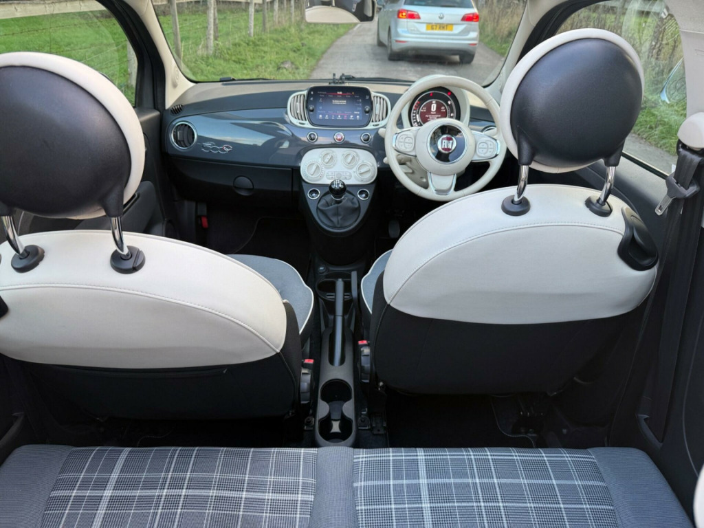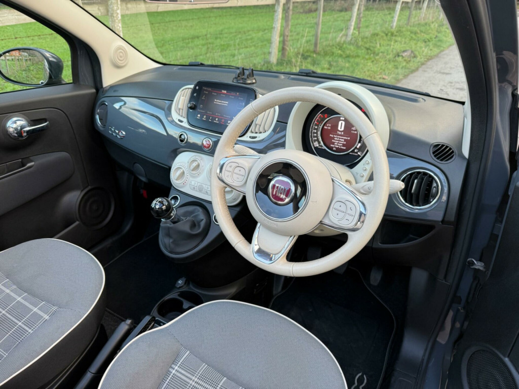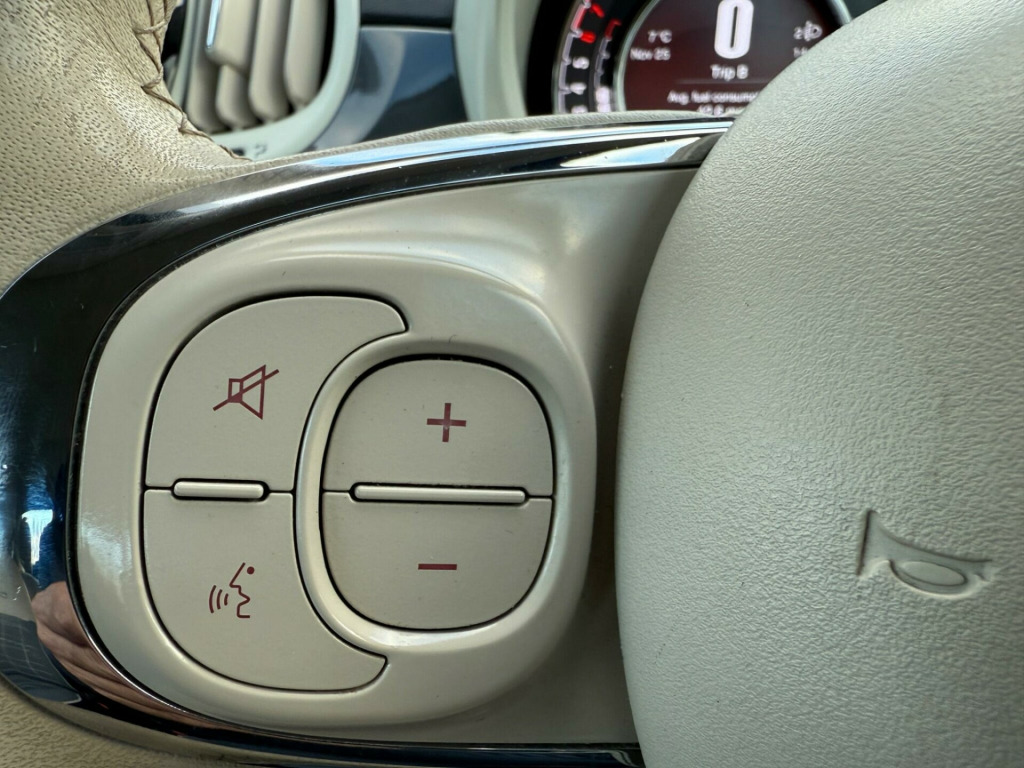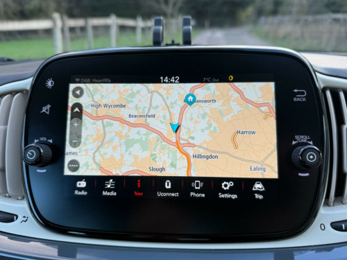 Discover this charming 2019 Fiat 500C Lounge, a delightful city car that combines style with practicality. This Euro 6 compliant model boasts a fuel efficient 1.2L petrol engine, making it an economical choice for your daily journeys. Inside, you'll find a well equipped cabin featuring a 7in HD touchscreen with 3D navigation, perfect for finding your way around, alongside a 7in TFT instrument cluster for clear driver information. Enjoy your favourite music with the integrated DAB radio, and stay connected on the go with Bluetooth, USB, and Aux inputs. Comfort is also a priority, with front seats offering a memory function for personalised seating positions and air conditioning to keep you cool.This Fiat 500C Lounge is designed to be kind to your wallet and the environment. It achieves an impressive fuel economy of around 50 miles per gallon, which is better than many similar vehicles. Furthermore, its low CO2 emissions and low insurance group rating indicate that running costs are kept to a minimum, making it an exceptionally sensible choice for everyday driving. This vehicle will be supplied with a new MOT and service before collection. HPI clear, 3 Month Warranty Included With The Option To Extend, Bespoke Finance Packages can be arranged , Debit Cards and Bank Transfers accepted, Part Exchange Welcome. Call our office today for more information. We are located in Chalfont St Peter, approximately 5 minutes from junction 17 on the M25 and around 10 minutes from junction 1 on the M40. Collection from local train stations can be arranged. n hd touchscreen radio with 3d navigation - bluetooth - usb-aux-in and dab, 7in tft instrument cluster, cloth - black-light grey-ivory with ivory ambience and black roof, 12v point, 15in alloy wheels, 50-50 split folding rear seat with height adjustable head restraints, 5in touchscreen radio with aux - usb - dab - bluetooth, abs with ebd, air conditioning, automatic door locking, body coloured bumpers, chrome kit, chrome plated exterior door handles, cruise control, driver and passenger airbag with dual stage system, drivers knee airbag, dualdrive power steering, esc - electronic stability control, electric front windows, electrically adjustable painted door mirrors with defrosting and external temperature sensor, fix and go puncture repair kit, fog lights, front seat belts with pretensioners - load limiter and fastening sensor, front seats with memory function, hazard light automatic activation during emergency braking, heat reflective windows, heated rear window, height adjustable drivers seat, height adjustable front head restraints, isofix attachment points for child safety seat on rear seat, instrument panel with rev counter, led daytime running lights, rear parking sensors, remote central locking, seats-back pockets, side airbags, speed limiter, steering wheel - height adjustment, steering wheel - leather with audio controls, tpms - tyre pressure monitoring system, window airbags