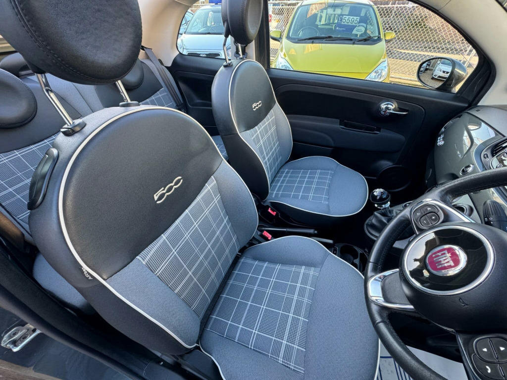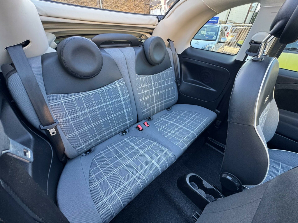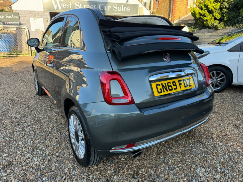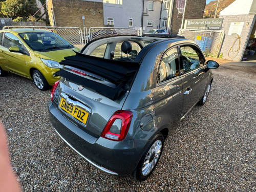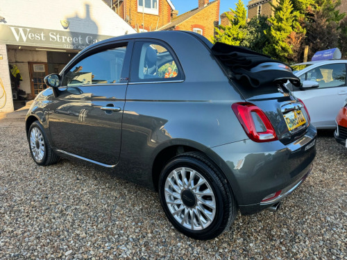 2019 Fiat 500C Lounge, 1.2 petrol with only 52,300 miles and full main dealer service history. This excellent convertible that combines chic design with practical features. Powered by an efficient 1.2 litre Euro 6 petrol engine, this model offers an impressive fuel economy of around 50 miles per gallon. The Lounge trim comes equipped with desirable features such as 15 inch alloy wheels and a 7 inch HD touchscreen radio complete with Bluetooth connectivity for calls and music streaming, USB and AUX inputs, and DAB digital radio.This Fiat 500C Lounge also benefits from a Tech Pack, enhancing your driving experience with Android Auto and Apple CarPlay integration, allowing seamless connection of your smartphone. You'll also find rear speakers for improved audio quality and a 7 inch TFT instrument cluster for clear display of driving information. With low CO2 emissions and a low insurance group, this car represents an economical choice for many drivers, indicating it is a more affordable option to own and run compared to similar vehicles.At West Street Car Sales all our vehicles are HPI checked, We also check the vehicles history, mileage , services and ownership to makes sure the vehicles we are supplying are of great quality. We ensure our cars are priced competitively within the market and also include 3 months national parts and labour warranty The warranty has optional upgrades and we can discuss these with you if you wish. Your vehicle will come with 3 months warranty, a vehicle history check, a recent service and at least 6 months mot. Why not take out a care package and your new car will come with 12 months parts and labour Warranty, a 12 Month MOT, and a fresh service for an additional * fee applies* .*Indemnity applies £199 oth - black-light grey-ivory with black ambience and black roof, 7in hd touchscreen radio with bluetooth - usb-aux-in and dab, rear speakers, tech pack, 15in alloy wheels - 4wq, 7in tft instrument cluster, 12v point, 15in alloy wheels, 50-50 split folding rear seat with height adjustable head restraints, 5in touchscreen radio with aux - usb - dab - bluetooth, abs with ebd, air conditioning, automatic door locking, body coloured bumpers, chrome kit, chrome plated exterior door handles, cruise control, driver and passenger airbag with dual stage system, drivers knee airbag, dualdrive power steering, esc - electronic stability control, electric front windows, electrically adjustable painted door mirrors with defrosting and external temperature sensor, fix and go puncture repair kit, fog lights, front seat belts with pretensioners - load limiter and fastening sensor, front seats with memory function, hazard light automatic activation during emergency braking, heat reflective windows, heated rear window, height adjustable drivers seat, height adjustable front head restraints, isofix attachment points for child safety seat on rear seat, instrument panel with rev counter, led daytime running lights, rear parking sensors, remote central locking, seats-back pockets, side airbags, speed limiter, steering wheel - height adjustment, steering wheel - leather with audio controls, tpms - tyre pressure monitoring system, window airbags