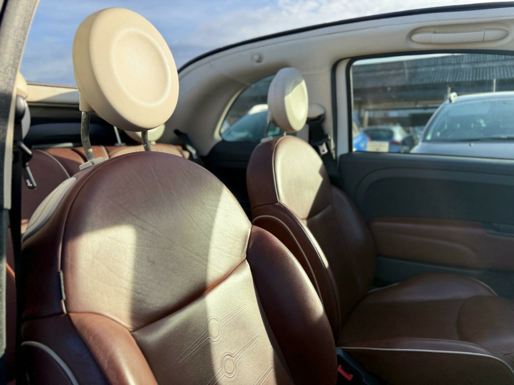 This 2010 Fiat 500C Pop is a truly special find, having been cherished by just one owner from new with a clear vehicle history check. This stylish convertible features a lively 1.2L petrol engine and comes in the Pop trim. Inside, you'll appreciate the practical 50:50 split folding rear seats, complete with two upholstered rear headrests for added comfort. The interior is further enhanced by elegant tan leather upholstery, a cigar lighter, and front fog lights to help you see and be seen.This Fiat 500C Pop offers excellent value, boasting an impressive fuel economy of 57 miles per gallon, which is a significant advantage over many other cars in its class. Furthermore, its low insurance group rating means more money in your pocket, and its low CO2 emissions contribute to a more environmentally friendly drive. These highlights demonstrate how this particular Fiat 500C Pop stands out for its economy and affordability. in steel wheels, 14in vintage wheel covers, 6 speakers, air conditioning, black ambience, black door mirrors, black soft- top, folding rear seatbacks, front passenger underseat box, ivory ambience, ivory soft top, red soft top, front foglights, 50:50 split folding rear seats & 2 upholstered rear headrests, leather- tan, leather- leather, rear headrests, cigar lighter
