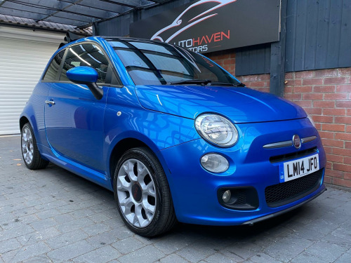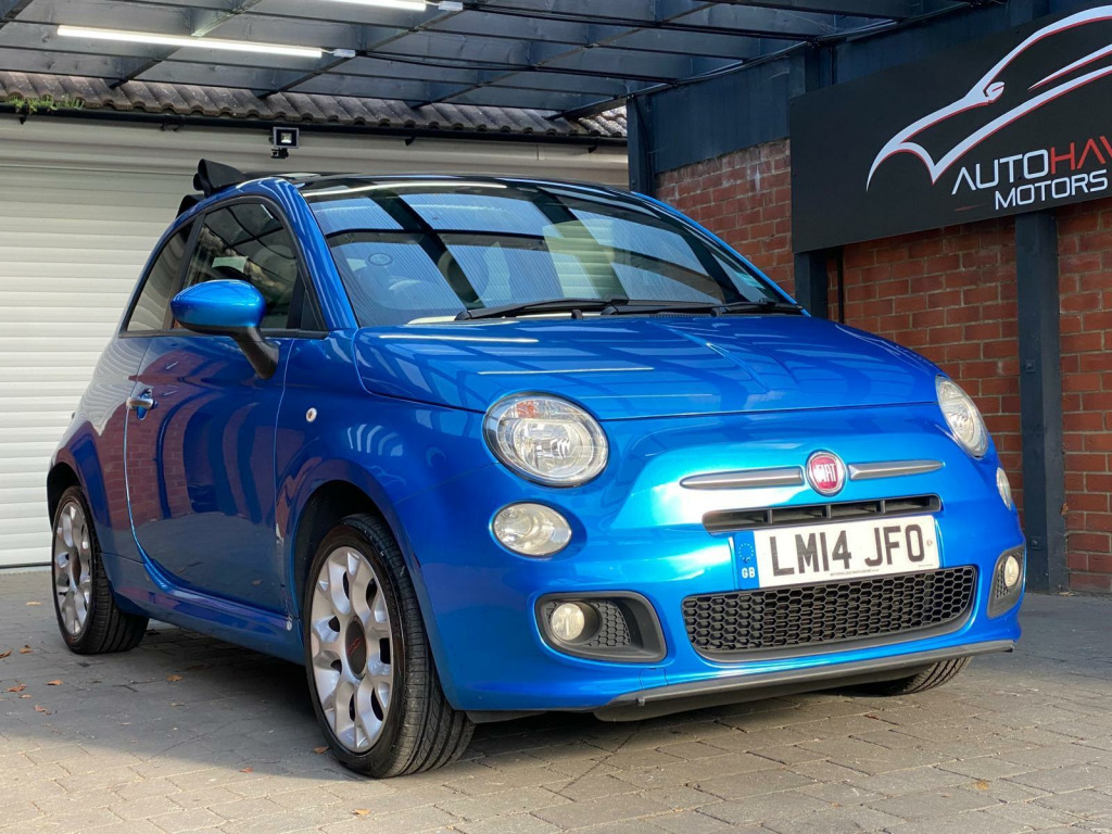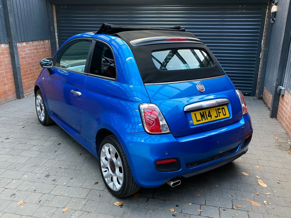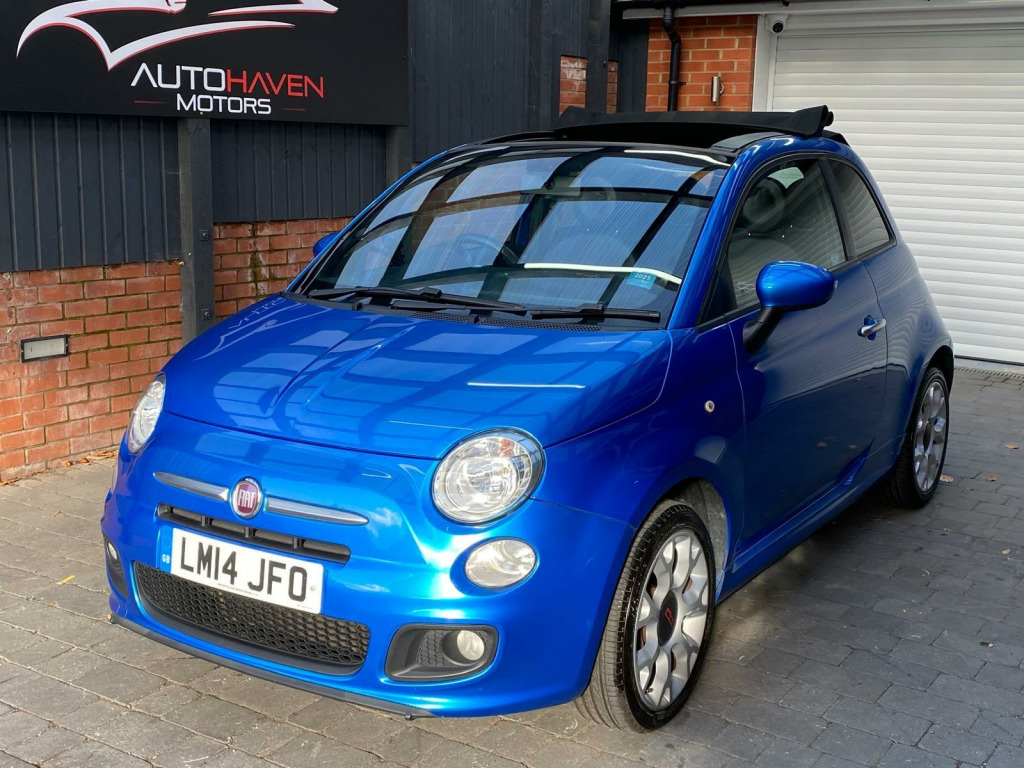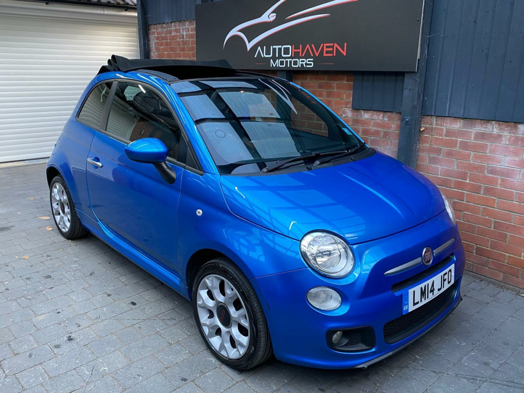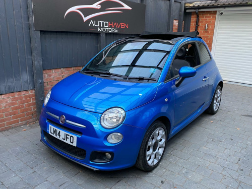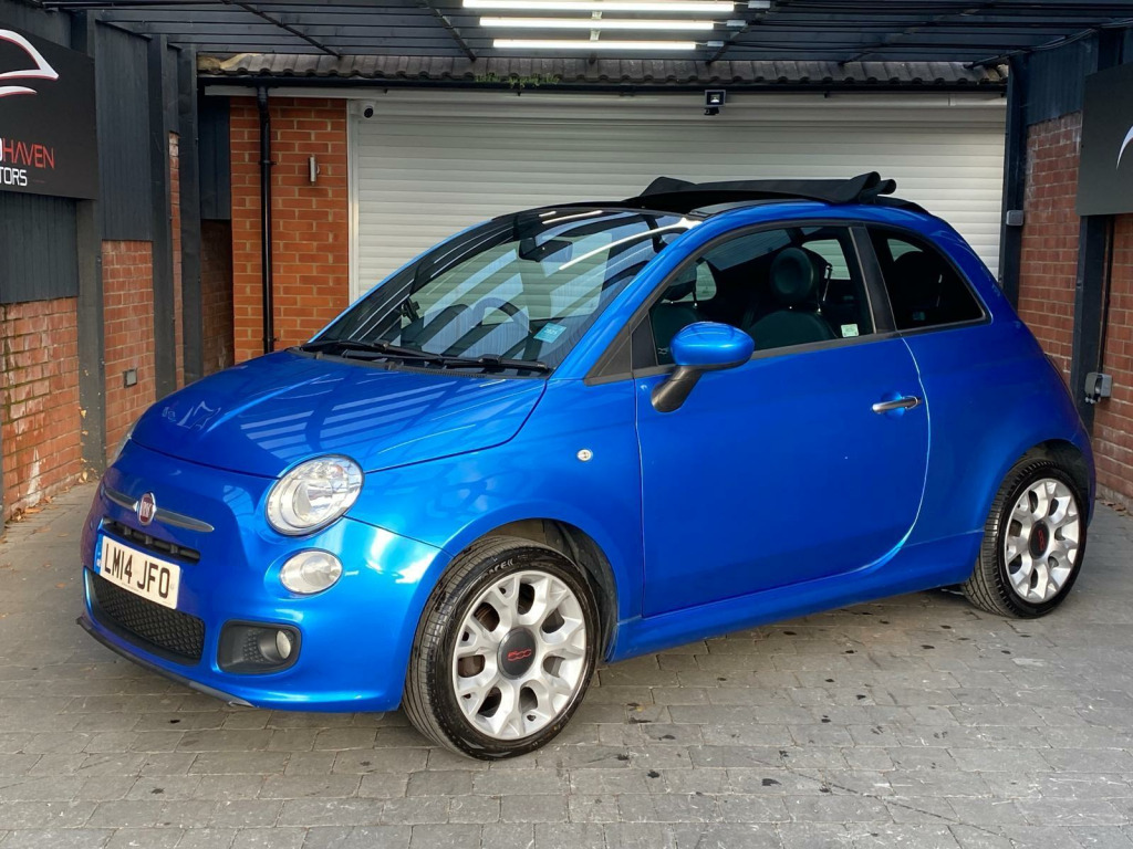 This 2014 Fiat 500C S boasts an exceptionally low mileage for its age, having covered just 51,650 miles. This particular example comes with a full service history, with its last service completed on 14th November 2025 at 51,635 miles, and its MOT remains valid until September 2026. Under the bonnet, you'll find a 1.2 litre petrol engine, compliant with Euro 6 emissions standards. This stylish 500C S also features rear parking.The highlights of this Fiat 500C S demonstrate its excellent value and efficiency. It achieves an impressive fuel economy of 59 miles per gallon, making it an economical choice for your journeys. Furthermore, it sits in a low insurance group, which can help to reduce your running costs. Its low CO2 emissions also mean it is kinder to the environment compared to many other vehicles in its class.** The convertible roof requires attention, as it currently only opens halfway. This has been reflected in the asking price** This is an absolute bargain as its priced £1000 under retail.Comes with a load of paperwork including the cambelt being renewed in 2023 and new tyres fitted and comes with 2 keys. Drives very well. ue&me - predisposition for tomtom, cloth - black-blue with black ambience and black roof, 12v socket, 16in alloy wheels - 5a6, abs - anti-lock braking system, airbags - driver, airbags - front side, airbags - passenger, bas - brake assistance system, blue&me - hands free system with usb port, body coloured bumpers, body coloured door mirrors, climate control - automatic dual zone, dark tinted rear windows, drivers knee airbag, ebd - electronic brakeforce distribution, electric front windows, electrically adjustable heated door mirrors, fix and go puncture repair kit, fog lights, heated rear window, height adjustable drivers seat, locking wheel nuts, power steering - dualdrive electric, radio-cd and mp3 player, rear parking sensors, remote central locking, seats - 50-50 split folding rear, seats - sports, seats-back pockets, steering wheel - height adjustment, storage under passenger seat, thermal windows, usb and aux, window airbags