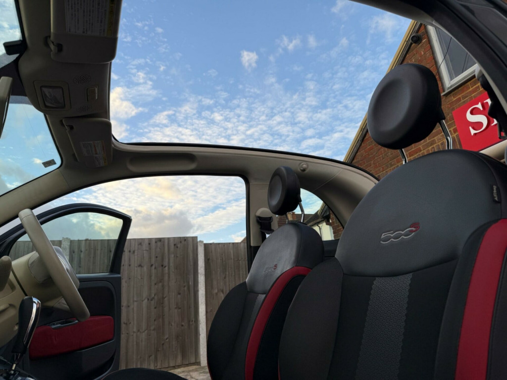 We are known for our carefully sourced Japanese imports - All are inspected, registered, and ready for UK roads to drive away with confidence. We also include 6 months nationwide warranty cover with every vehicle for extra peace of mind, Every vehicle we sell is hand-picked for quality, condition, and value, no shortcuts and no compromises.Discover the stylish Fiat 500C S, a 2025 model year vehicle ready for its first owner. This charming convertible features a responsive 1.2 litre petrol engine, perfect for navigating city streets and enjoying open top driving. Inside, you'll find the convenience of  air conditioning, ensuring a comfortable cabin temperature for everyone ar parking sensors, black/red half leather sports seats, 17'' sport alloys wheels in black, air conditioning, contrast red roof, stereo radio-cd and mp3 player with steering mounted audio controls, remote central locking with 2 keys, electric front windows, tinted glass, electrically adjustable door mirrors, seats - sports, height adjustable drivers seat, seats - 50-50 split folding rear, 12v socket, abs - anti-lock braking system, airbags - driver, airbags - front side, airbags - passenger, bas - brake assistance system, body coloured bumpers, body coloured door mirrors, drivers knee airbag, ebd - electronic brakeforce distribution, fix and go puncture repair kit, fog lights, heated rear window, locking wheel nuts, power steering - dualdrive electric, window airbags
