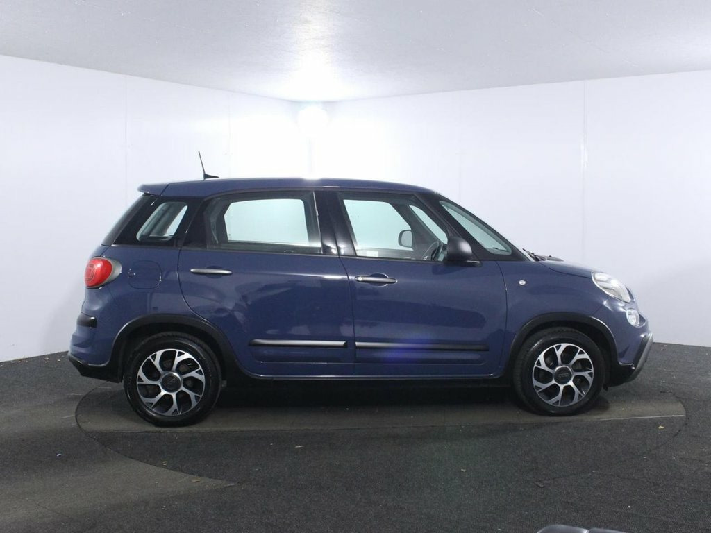 Comprehensive service history with 6 services. Last serviced at 22,510 miles. The 2019 Fiat 500L 1.4 City Cross is a practical and characterful compact MPV that blends iconic 500 styling with "Trekking" ruggedness. Powered by a 1.4-litre four-cylinder naturally aspirated petrol engine producing 95 bhp (95 ps) and 127 Nm of torque, it is paired with a six-speed manual gearbox, achieving a 0–62 mph time of 12.8 seconds and a top speed of 106 mph. This Euro 6 compliant model offers reasonable efficiency, with an official combined economy of 45.6 mpg, while real-world mixed driving typically averages around 38–41 mpg. Finished in Bellagio Blue, the City Cross is distinguished by its high-ride suspension (increased by 10%), 16-inch alloy wheels, and a Trekking body kit including side mouldings and rugged bumpers. The interior of the 500L City Cross is designed for family versatility, featuring black fabric seats with white stitching and a coordinating white dashboard. Technology is centered around a 7-inch HD touchscreen radio with DAB, Bluetooth, and full smartphone integration via Apple CarPlay and Android Auto. Practical features include dualdrive power steering for easier city maneuvers, manual air conditioning, and a height-adjustable driver's seat. Safety is well-supported with six airbags as standard, alongside advanced stability controls such as Hill Holder, Electronic Rollover Mitigation (ERM), and Brake Assist (BAS). The vehicle's practi 16in Alloy Wheels, 6 Airbags, 7in HD Touchscreen Radio with Bluetooth , ABS - Anti-Lock Braking System, Air Conditioning, Apple CarPlay - Android Auto Connectivit, Bellagio Blue, Body Coloured Electrically Adjustable Do, Cruise Control, Dualdrive Power Steering, Electric Front Windows, ESC - Electronic Stability Control Inclu, Fabric - Black with White Stitching - Wh, Fix and Go Puncture Repair Kit, Fog Lights, Heated Rear Window, Height Adjustable Drivers Seat, High Ride, Remote Central Locking, Steering Wheel - Height and Reach Adjust, Techno-Leather Steering Wheel with Audio, Trekking Body Kit, Trekking Side Mouldings, Tyre Pressure Monitor System