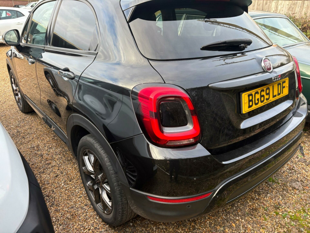 This 2019 Fiat 500X FireFly Turbo S-Design is presented with a recent service in May 2023 at 30,490 miles, offering peace of mind alongside its Euro 6 compliant 1.0 litre petrol engine. This S-Design trim model comes with a 3 month warranty and a full 12 months MOT provided on purchase, ensuring its roadworthiness. Its partial service history details are available for review.Enjoy a comfortable driving experience with the automatic dual zone climate control and the convenience of LED headlights. Stay connected and entertained with Apple CarPlay and Android Auto compatibility, all accessed through the 7in HD touchscreen DAB radio which also features Bluetooth, USB and AUX in connectivity. Parking is made easier with the rear parking sensors. This model also benefits from low CO2 emissions, making it a more environmentally conscious choice compared to similar vehicles.. 17in Alloy Wheels - Myron Black, 3.5in TFT Colour Screen, 6 Airbags, 7in HD Touchscreen DAB Radio with Bluetooth - USB - AUX-In, All-Road Bumpers with Protective Inserts, Apple CarPlay - Android Auto Connectivity, Climate Control - Automatic Dual Zone, Cruise Control, Dashboard - Black, ESC - Electronic Stability Control Including ASR-MSR - Hill Holder - ABS - EBD - ERM - DST and BAS, Electric Windows - Front and Rear, Electronic Parking Brake, Fix and Go Puncture Repair Kit, Fog Lights, Height Adjustable Drivers Seat, LED Daytime Running Lights and Rear Brake Lights, LED Headlights, Lane Assist with Intelligent Speed Assist and Traffic Sign Recognition, Myron Black Electrically Adjustable Door Mirrors, Myron Black Inserts - Tailgate Door Handles - Front Mouldings, Rack and Pinion with Dual Drive Power Steering, Rear Dark Tinted Windows, Rear Parking Sensors, Remote Central Locking, Roof Rails, Techno-Leather Steering Wheel with Audio Controls, Tyre Pressure Monitor System, Fabric and Techno Leather - Black with Black Piping. Part service history