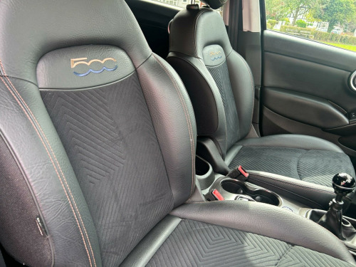 This 2017 Fiat 500X S Design is presented with a clear vehicle history check, offering you peace of mind. Powered by an efficient 1.4 litre petrol engine and meeting Euro 6 emissions standards, this stylish crossover is a practical choice. Inside, you'll find automatic dual zone climate control for your comfort, while the 5 inch touchscreen DAB radio with navigation, Bluetooth, USB and Aux in connectivity keeps you entertained and informed on your journeys. The exterior is enhanced by dark finished Bi Xenon headlights and rear parking sensors for added convenience and safety.The Fiat 500X S Design stands out with its impressive fuel economy, achieving up to 47 miles per gallon, which indicates it is more economical than many similar vehicles. Furthermore, its placement in a low insurance group suggests that running costs will be more affordable. This combination of efficiency, affordability, and desirable features makes this 2017 Fiat 500X S Design a compelling option for your next car. v point, 17in alloy wheels - bi-colour with matt inserts, 3.5in tft colour screen, 5in touchscreen dab radio with navigation - bluetooth - usb - aux-in, 6 airbags, 60-40 split folding rear seats, black texturized dashboard, body coloured bumpers, climate control - automatic dual zone, copper finish 500 logo, cruise control with speed limiter, dark burnished tailgate handle, dark finished bi-xenon lights, dark finished central tunnel, dark finished door panels, dark tail lights surround, dark tinted rear windows, deadlocks, door handles and mirror caps in myron finish, drive mood selector, dualdrive power steering, erm - electronic rollover mitigation, esc - electronic stability control including asr-msr - hill holder - abs - ebd - erm - dst and bas, eco-leather steering wheel, electric adjustable wing mirror with defrosting function, electric windows - front and rear, electronic parking brake, fix and go puncture repair kit, front fog lights with cornering function, front moulding in myron finish, height adjustable drivers seat, longitudinal roof rails, multifunction steering wheel controls, passengers airbag deactivation, radio frame and central air vent frame in myron finish, rear parking sensors, rear spoiler, remote control central door locking, side mouldings in myron finish, tyre pressure monitor system