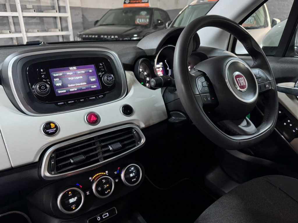This 2017 Fiat 500X E-Torq Pop Star is a standout example, boasting a clear vehicle history check and having been owned by just one former keeper. This example comes with a 10 Stamp History File with a large file of invoices, along with 2 keys and a lengthy MOT. This stylish compact SUV is powered by a responsive 1.6 litre petrol engine, meeting Euro 6 emissions standards. It comes equipped with desirable features including Satellite Navigation,rear parking sensors for easier manoeuvring, automatic climate control to keep you comfortable in all conditions, and a 5 inch touchscreen DAB radio complete with navigation, Bluetooth connectivity, USB and Aux inputs. The eye catching 17 inch alloy wheels add to its appealing look.The Fiat 500X E-Torq Pop Star offers a compelling package, further enhanced by its low insurance group rating, which suggests lower running costs compared to many similar vehicles. This particular model's single owner provenance and comprehensive feature set, including the integrated navigation and parking assistance, demonstrate its well maintained condition and thoughtful specification, making it a practical and enjoyable choice for everyday driving.. 12V Point, 17in Alloy Wheels, 3.5in TFT Monochrome Screen, 5in Touchscreen DAB Radio with Navigation - Bluetooth - USB - Aux-in, 6 Airbags, 60-40 Split Folding Rear Seats, Automatic Climate Control, Body Coloured Bumpers, Body Coloured Dashboard, Body Coloured Door Mirrors, Cooled Glovebox, Cruise Control with Speed Limiter, DAB Radio, Deadlocks, Drive Mood Selector, Dualdrive Power Steering, ERM - Electronic Rollover Mitigation, ESC - Electronic Stability Control Including ASR-MSR - Hill Holder - ABS - EBD - ERM - DST and BAS, Electric Adjustable Wing Mirror with Defrosting Function, Electric Windows - Front and Rear, Electronic Parking Brake, Fix and Go Puncture Repair Kit, Front Fog Lights with Cornering Function, Height Adjustable Drivers Seat, Height Adjustable Seatbelts, Leather Steering Wheel, Passengers Airbag Deactivation, Rear Parking Sensors, Rear Spoiler, Remote Control Central Door Locking, Seats-back Pockets, Speakers x6, Steering Wheel Audio Controls, Tyre Pressure Monitor System, Uconnect Live, Nav Pack, Cloth - Anthracite with Grey Piping. Full service history